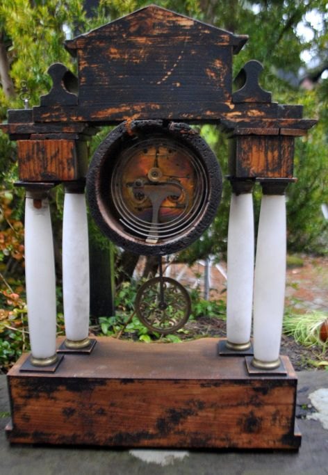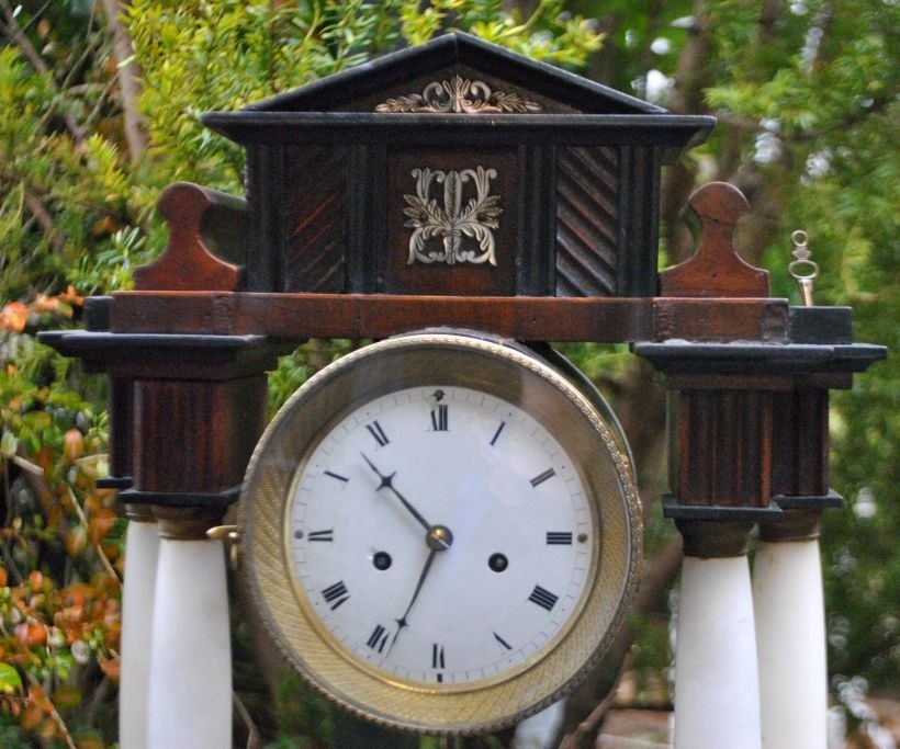 Søjleur i træ, messing og alabast, ca. 1830.