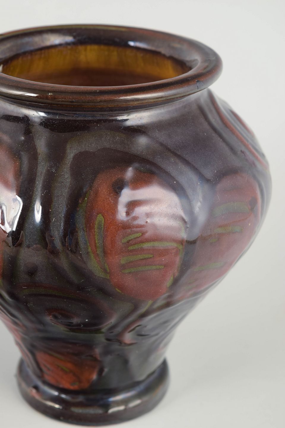 Kählers stentøjsproduktion i 1930’erne er kendt for sine eksperimenterende glasurteknikker og stærke dekorative udtryk. Oksehornsteknikken blev anvendt til at skabe dynamiske, næsten marmorerede overflader, hvor glasurens bevægelse blev en central del af formens udtryk. Disse vaser repræsenterer en periode, hvor håndværk, materialeforståelse og dekorativ kraft gik hånd i hånd.
