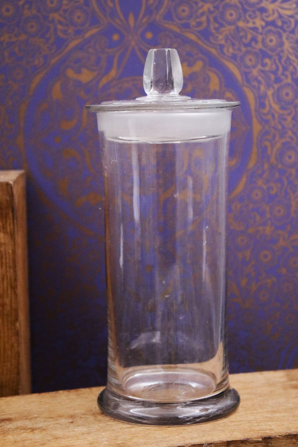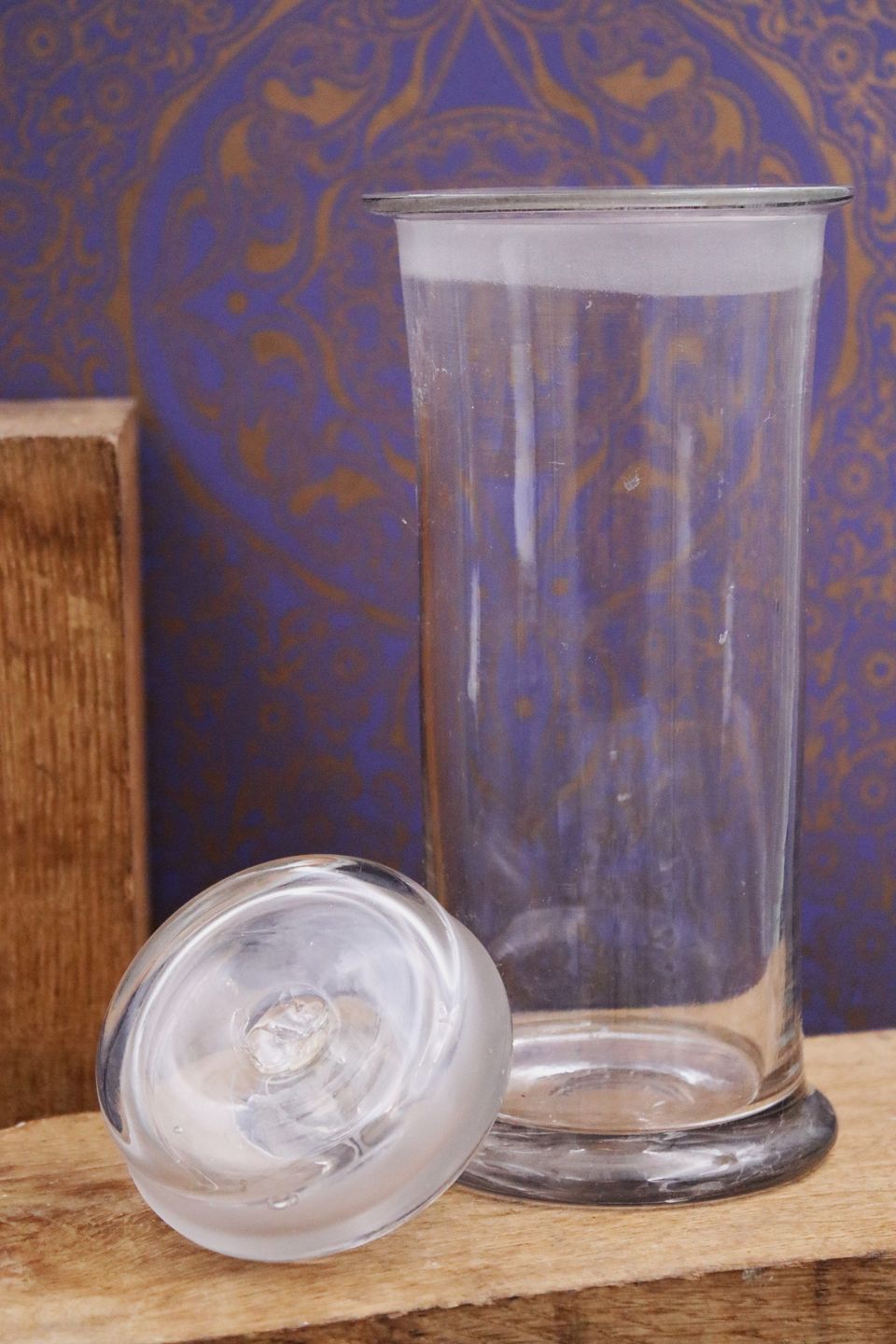 Antique French candy jars "pot a bonbon" in mouth-blown glass with lid and fine knob.