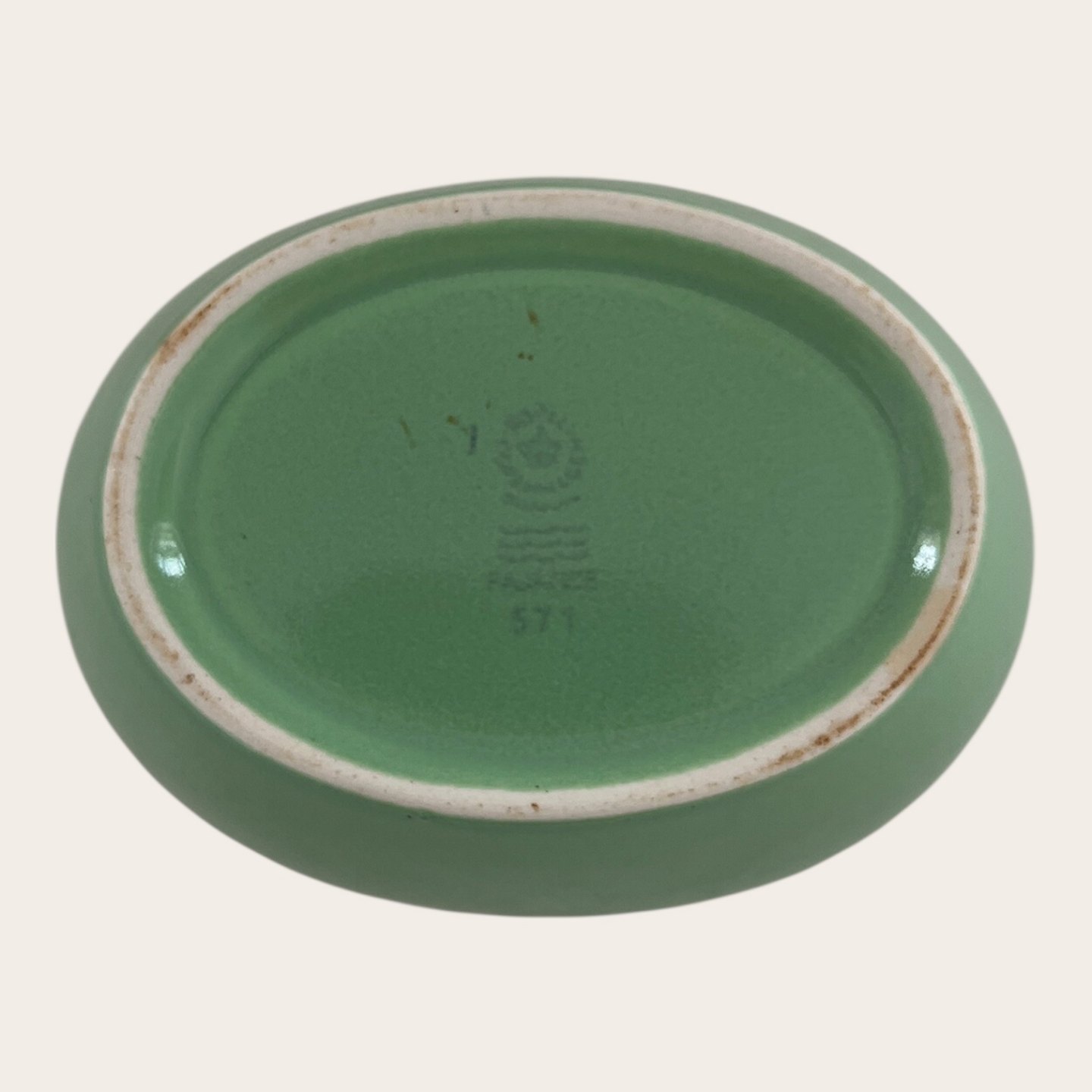 | Royal Copenhagen, Aluminia, Ursula, Oval skål, Grøn #571, 1. sortering, 10,5cm lang, 8cm bred, 6cm høj, Design Ursula Munch Petersen *Pæn stand*