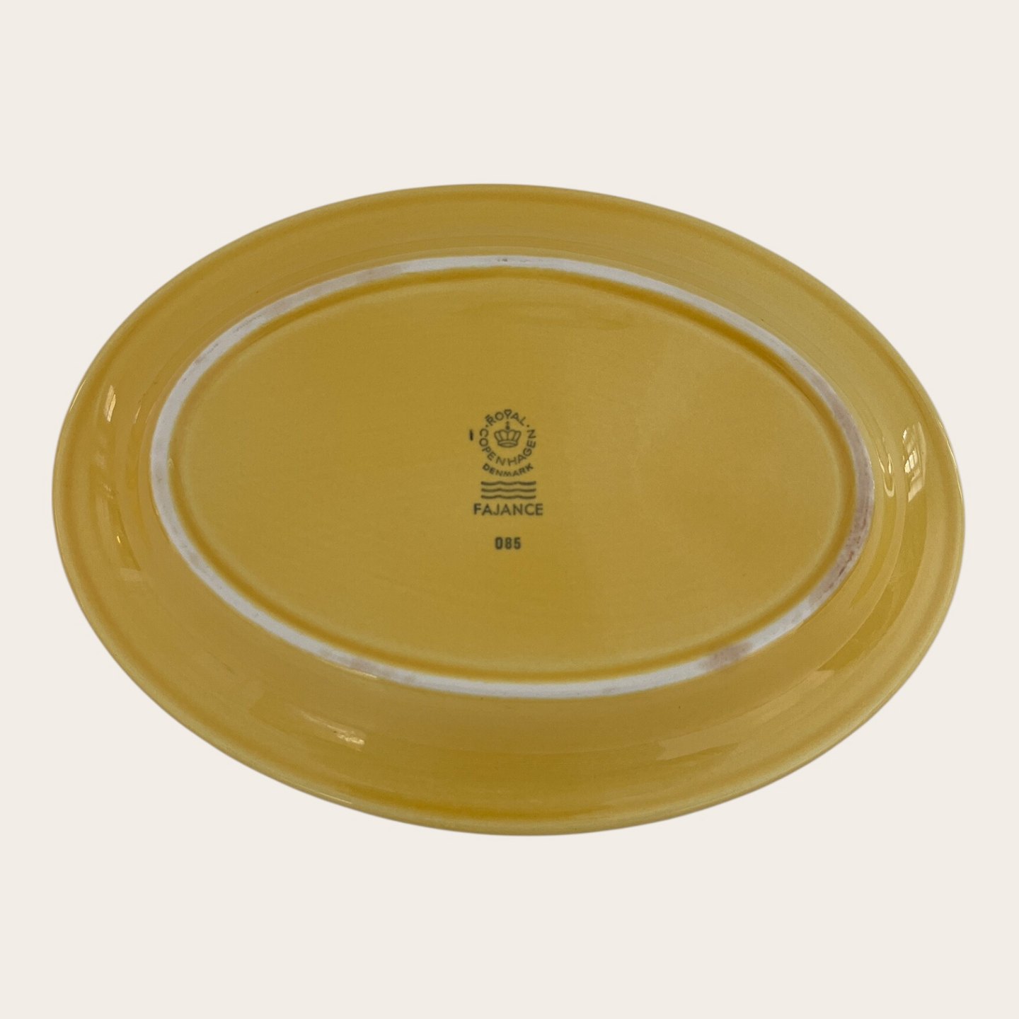 | Royal Copenhagen, Aluminia, Ursula, Tallerken, Gul #085, 1. sortering, 22cm lang, 16cm bred, Design Ursula Munch Petersen *Pæn stand*