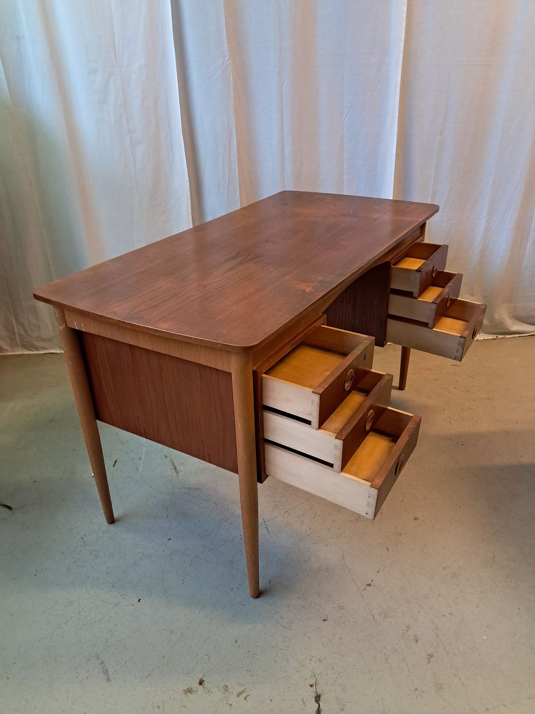Skrivebord i fineret teaktræ, fra 1960erne.