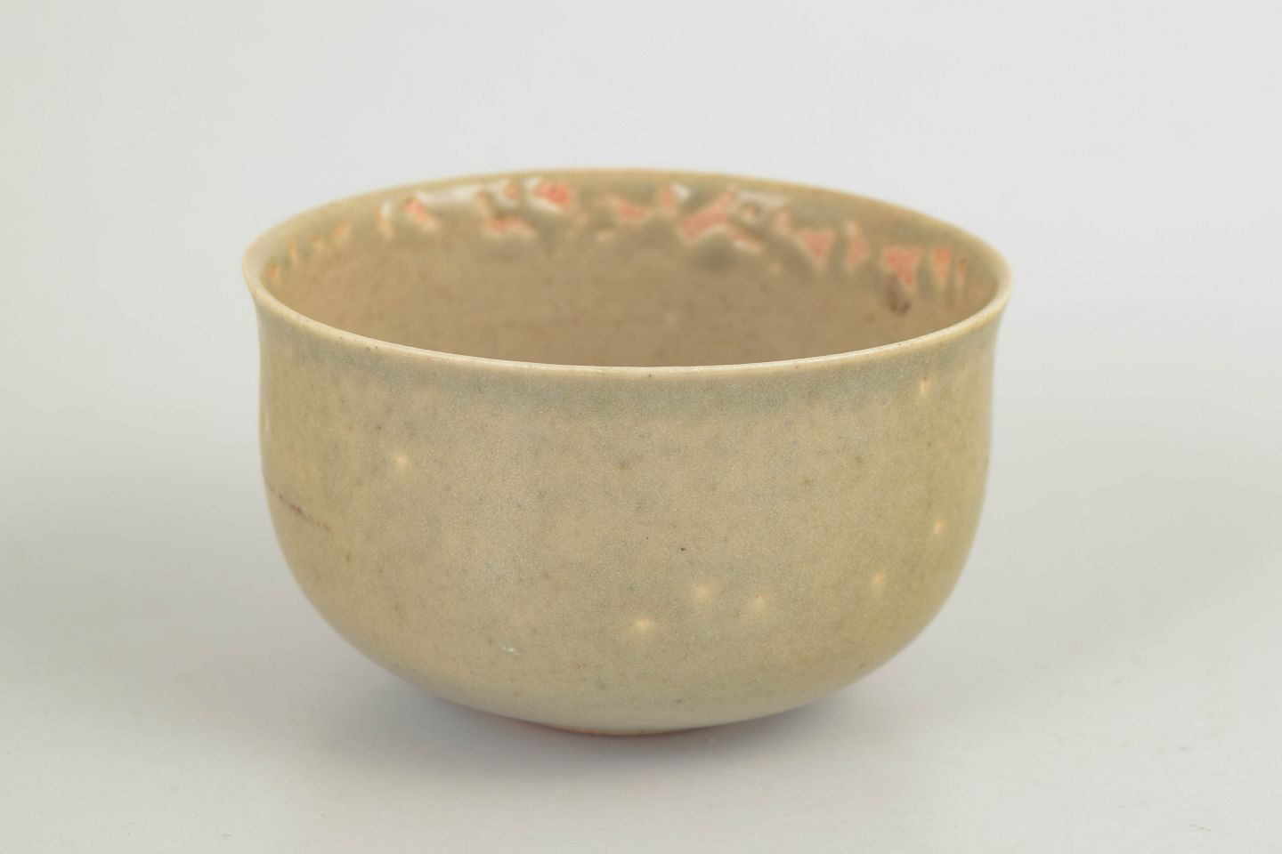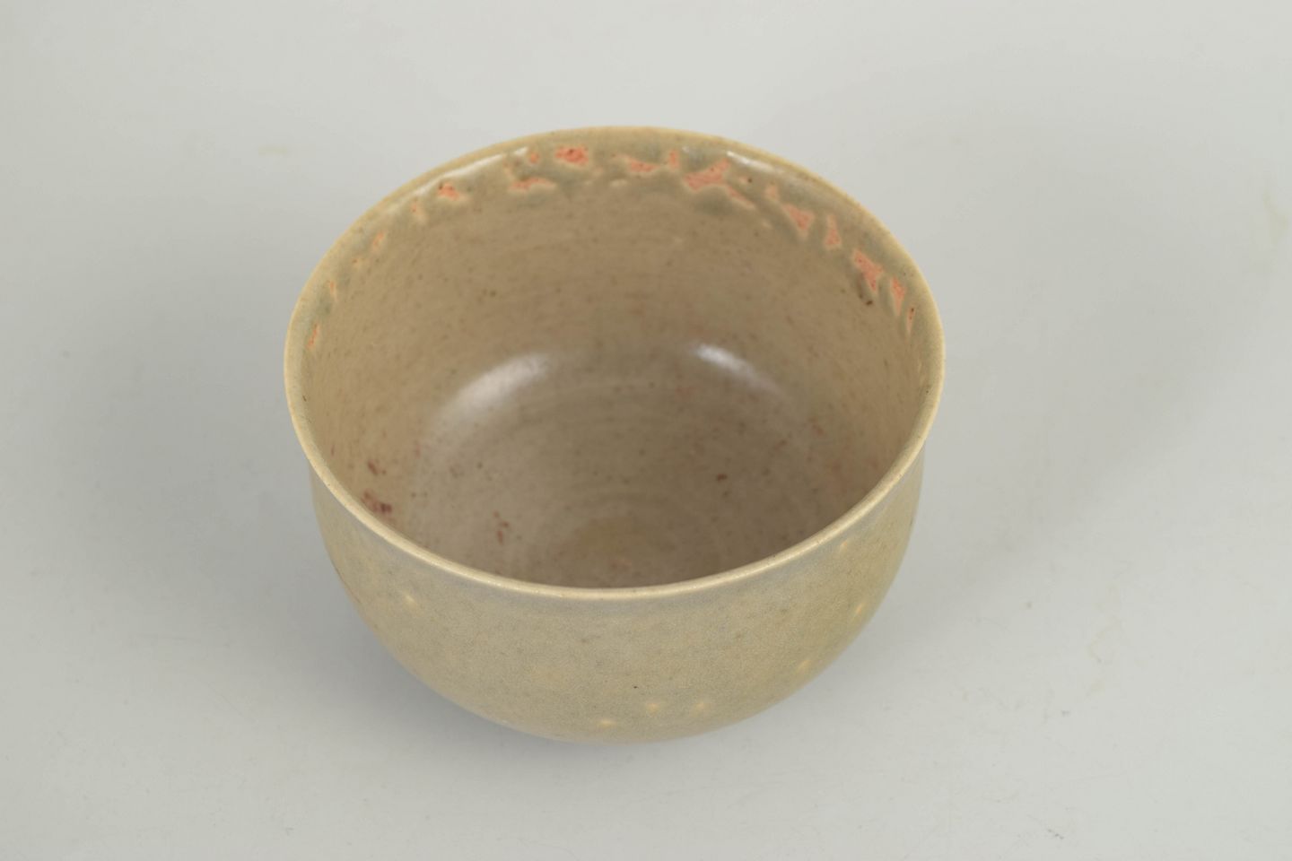 Drejet skål i stentøj med afrundet form og let indadbøjet rand. Udført med lys, sandfarvet glasur med diskrete variationer og fine glasurspil langs kanten. Signeret i bunden, produceret hos Höganäs i 1970’erne.