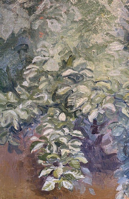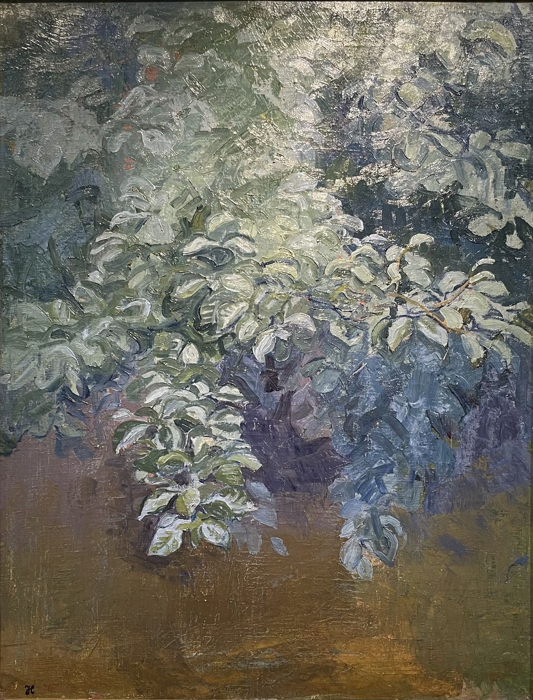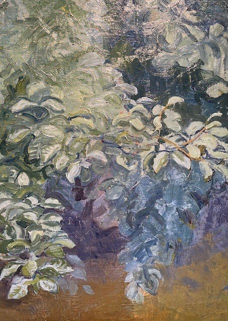 "Bøge ved en aa" Oliemaleri, et tidligt værk, muligvis har kunstnerens Hustru Alhed Larsen 1872-1927 været med i processen i at udføre dette sjældne værk.