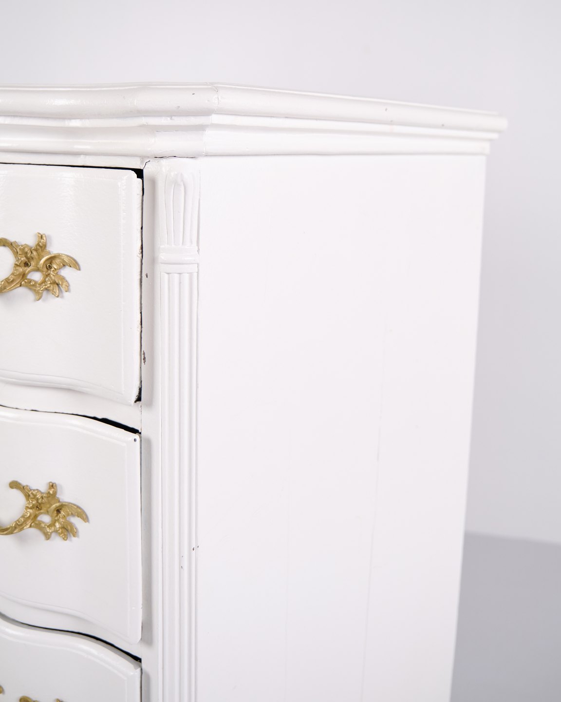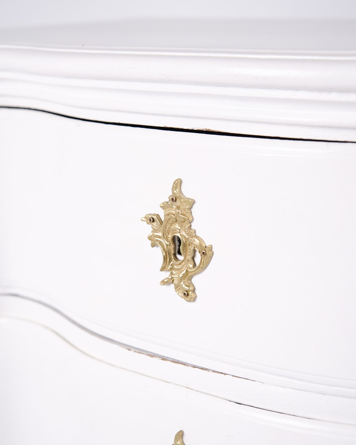 Antik Barok Kommode/Dragkiste Med 4 Skuffer - Barok - Hvidmalet & Messing Greb - 1760erne