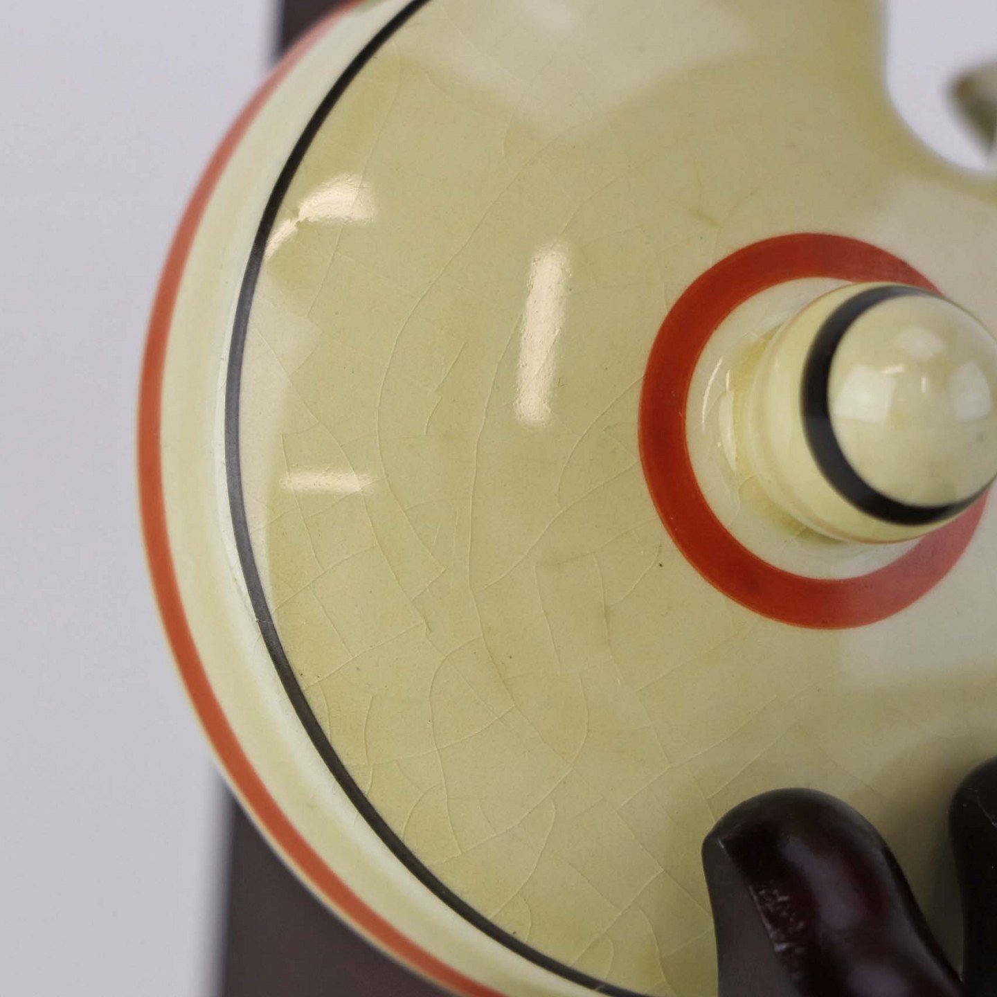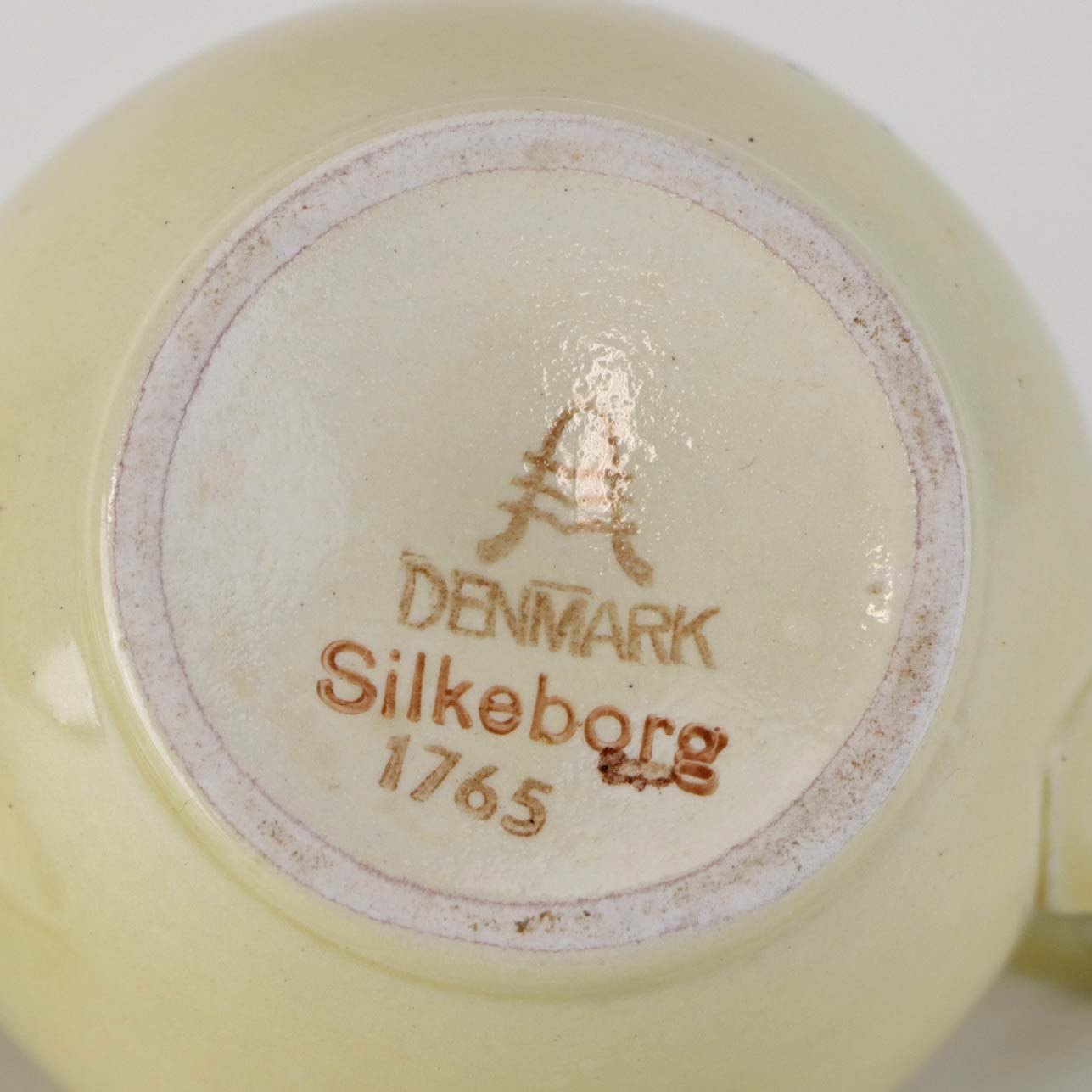 Kop med låg og hank til sennep i fajance fra stellet Silkeborg fremstillet i perioden 1937-1939. Nr. 1765