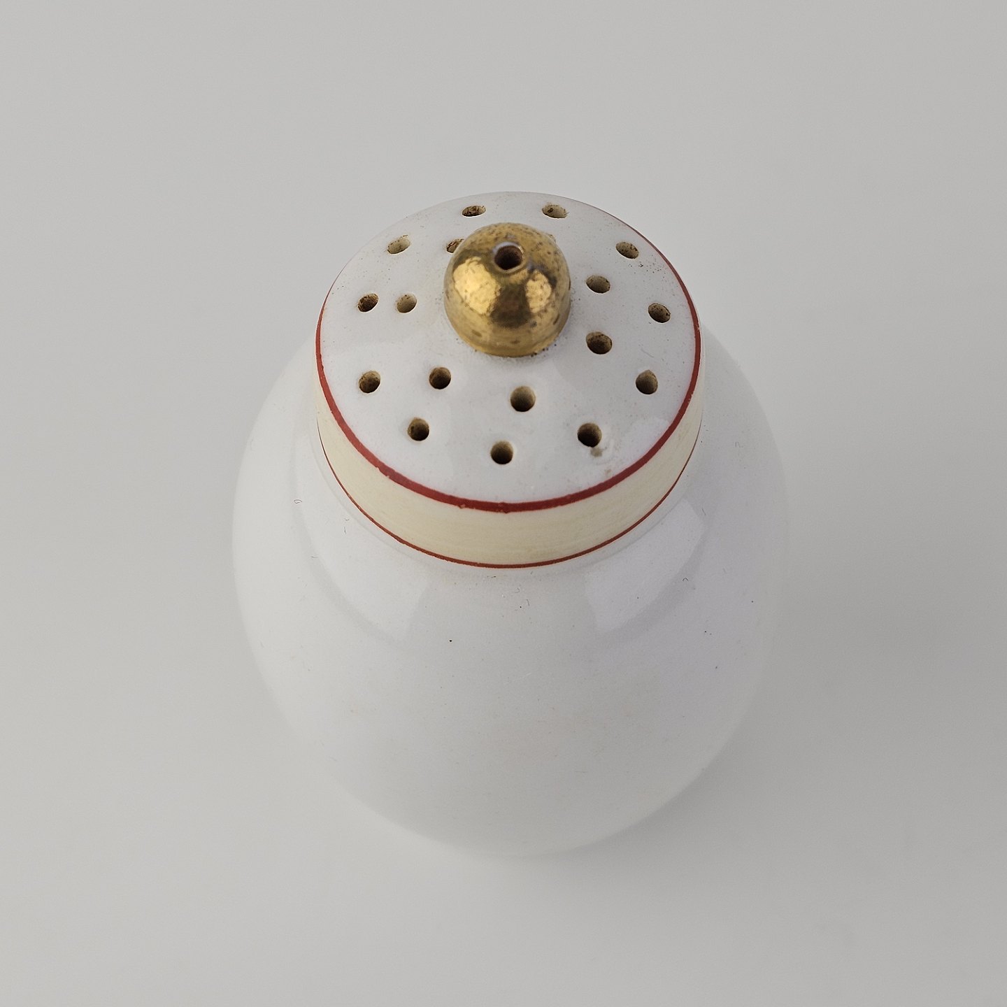 Saltbøsse eller peberbøsse i kongeligt porcelæn fra stellet Det spanske stel. Mangler prop