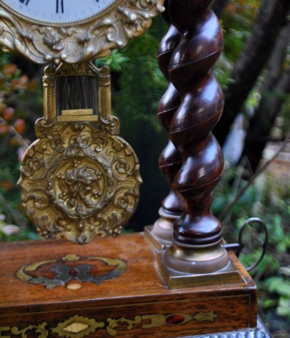 Søjleur i ibenholt træ, messing og med intarsia, ca. 1830. Frankrig.