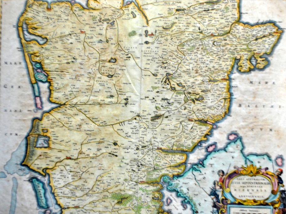 Frederik de Witt (17th century) Netherlands: Special map of the Ribe and Aarhus dioceses. ca. 1660. Hand-colored copper engraving. Unsigned. 44 x 58 cm. Latin edition.