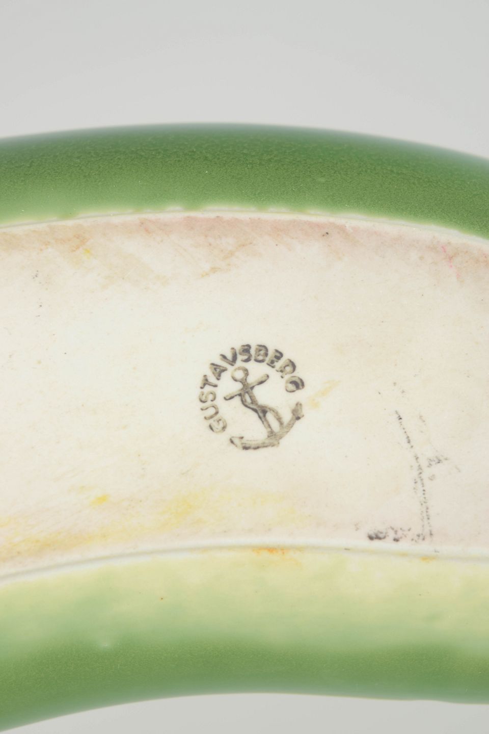 Stig Lindberg var en af de mest betydningsfulde svenske designere i det 20. århundrede og arbejdede i mere end tre årtier for Gustavsberg. Hans arbejde spænder fra funktionelt hverdagsservice til legende og skulpturelle objekter, ofte kendetegnet ved organiske former, klare farver og et humoristisk præg. De naturalistiske serveringsfade fra 1960’erne og 70’erne er i dag blandt hans mest eftertragtede og ikoniske værker.