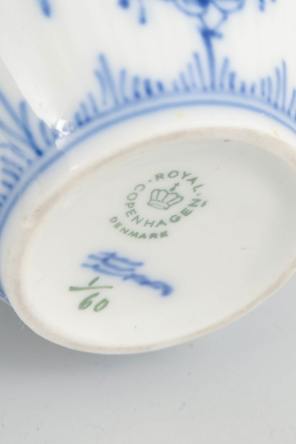 Royal Copenhagen, flødekande, Musselmalet riflet.