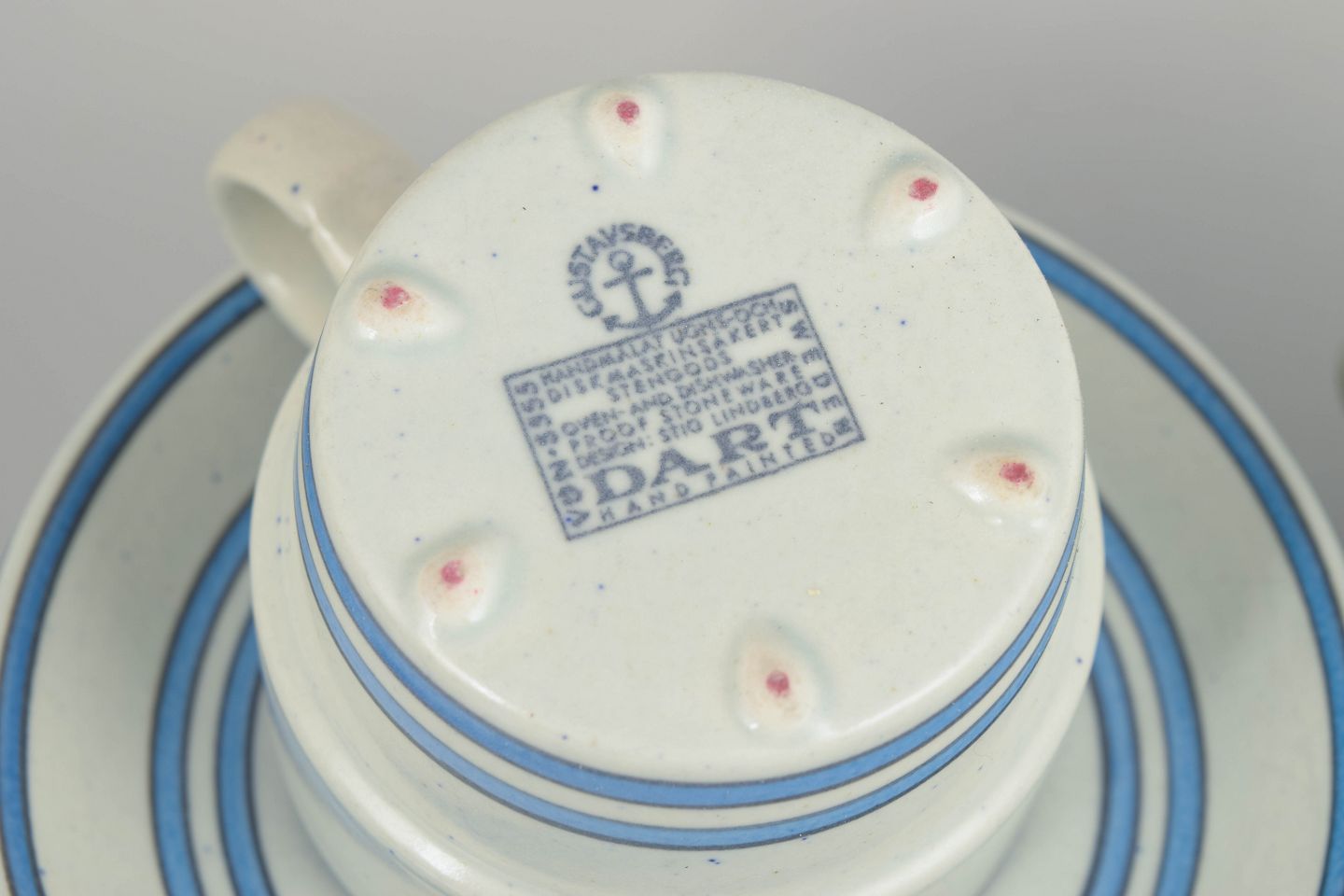 Stig Lindberg var en af Gustavsbergs mest betydningsfulde designere og havde stor indflydelse på udviklingen af svensk keramik i midten af det 20. århundrede. I 1960’erne og 70’erne arbejdede han med rene former og grafiske dekorationer, hvor funktionalitet blev kombineret med et legende og moderne udtryk. Serien “Dart” er et fint eksempel på denne tilgang og er i dag et eftertragtet samlerobjekt inden for skandinavisk design.