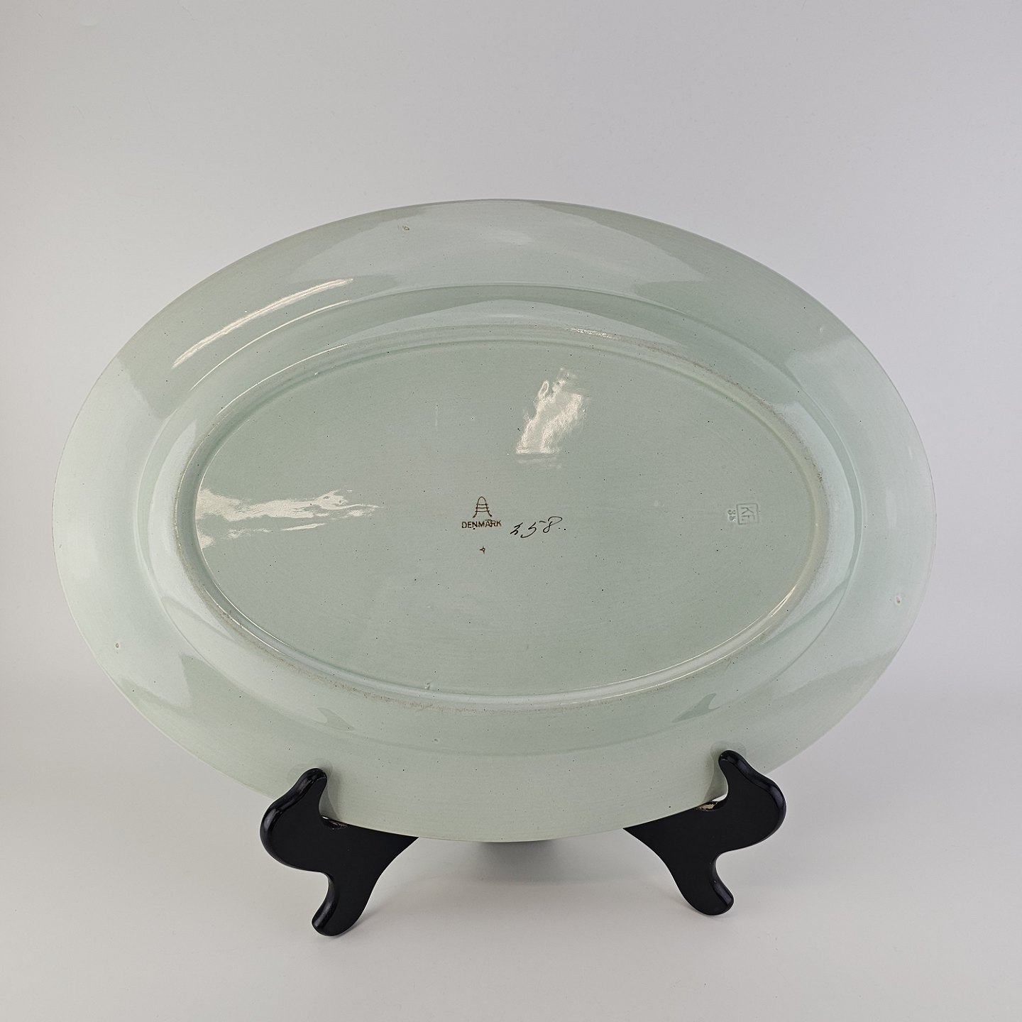 Stel i lysegrøn fajance med natur dekoration og flettet kant
