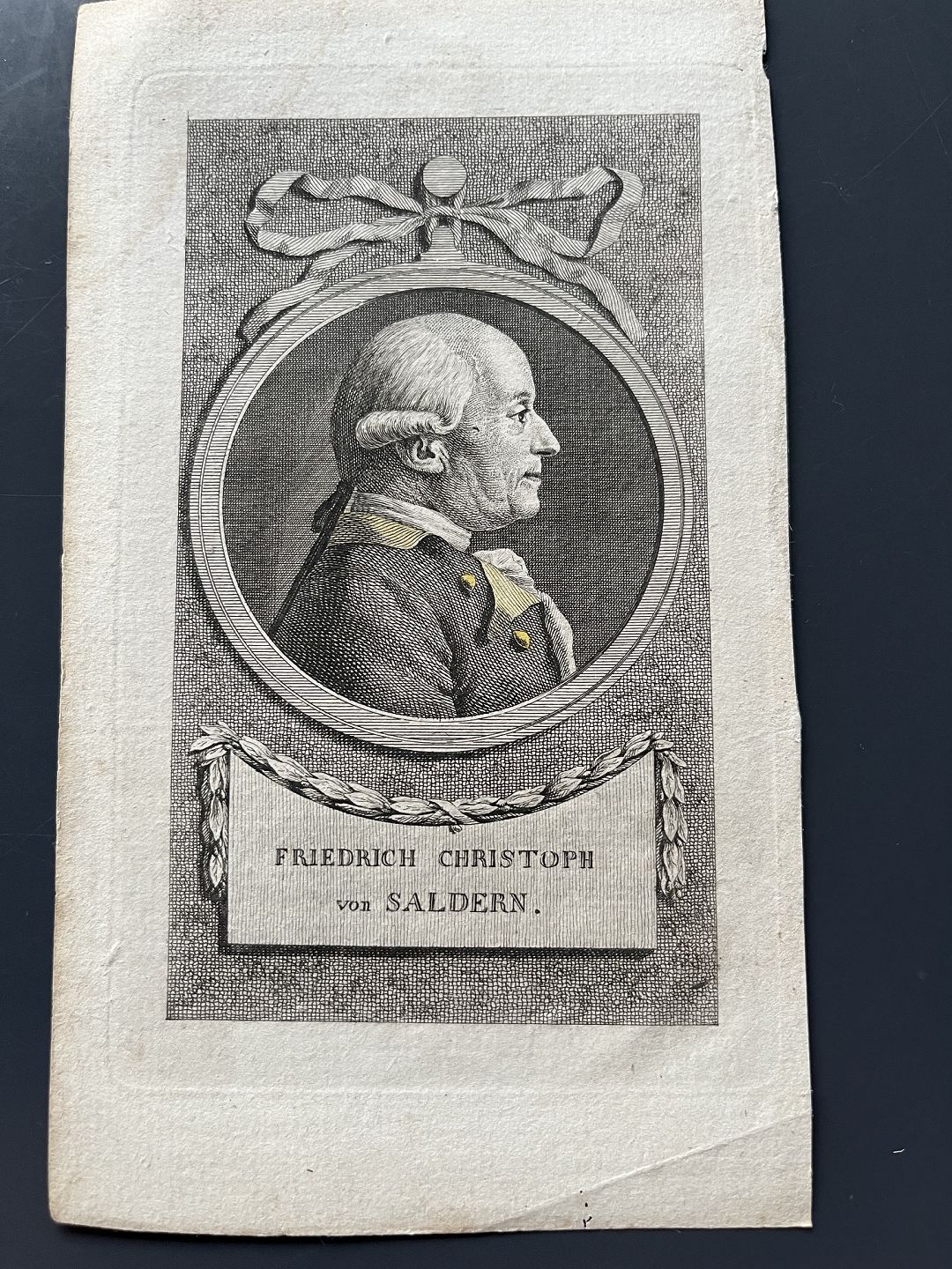 Kobberstik - Portræt af Officer Friedrich Christoph von Saldern.
