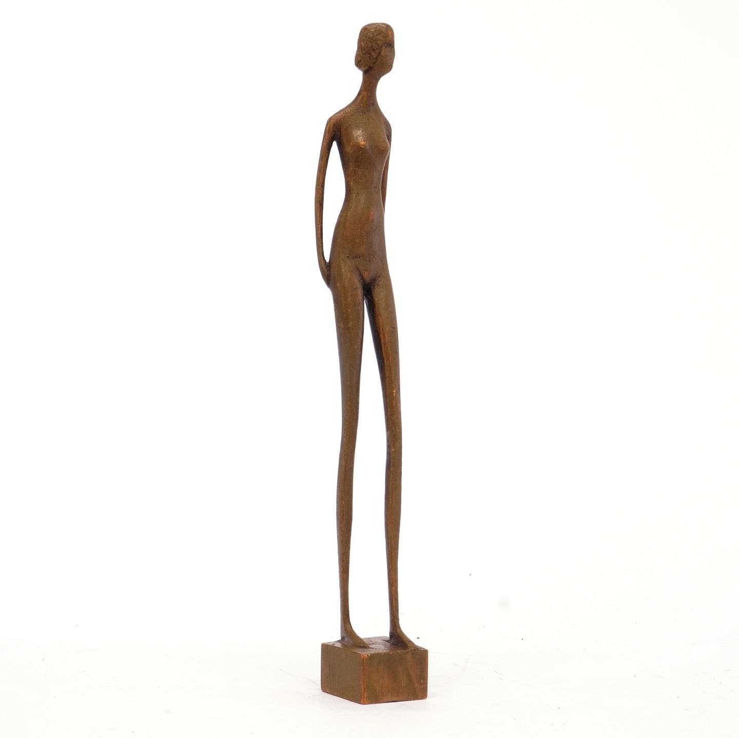 Otto P.-figur. Otto Pedersen, 1905-95, kvindefigur udført i træ. Signeret "Otto P". H: 47cm