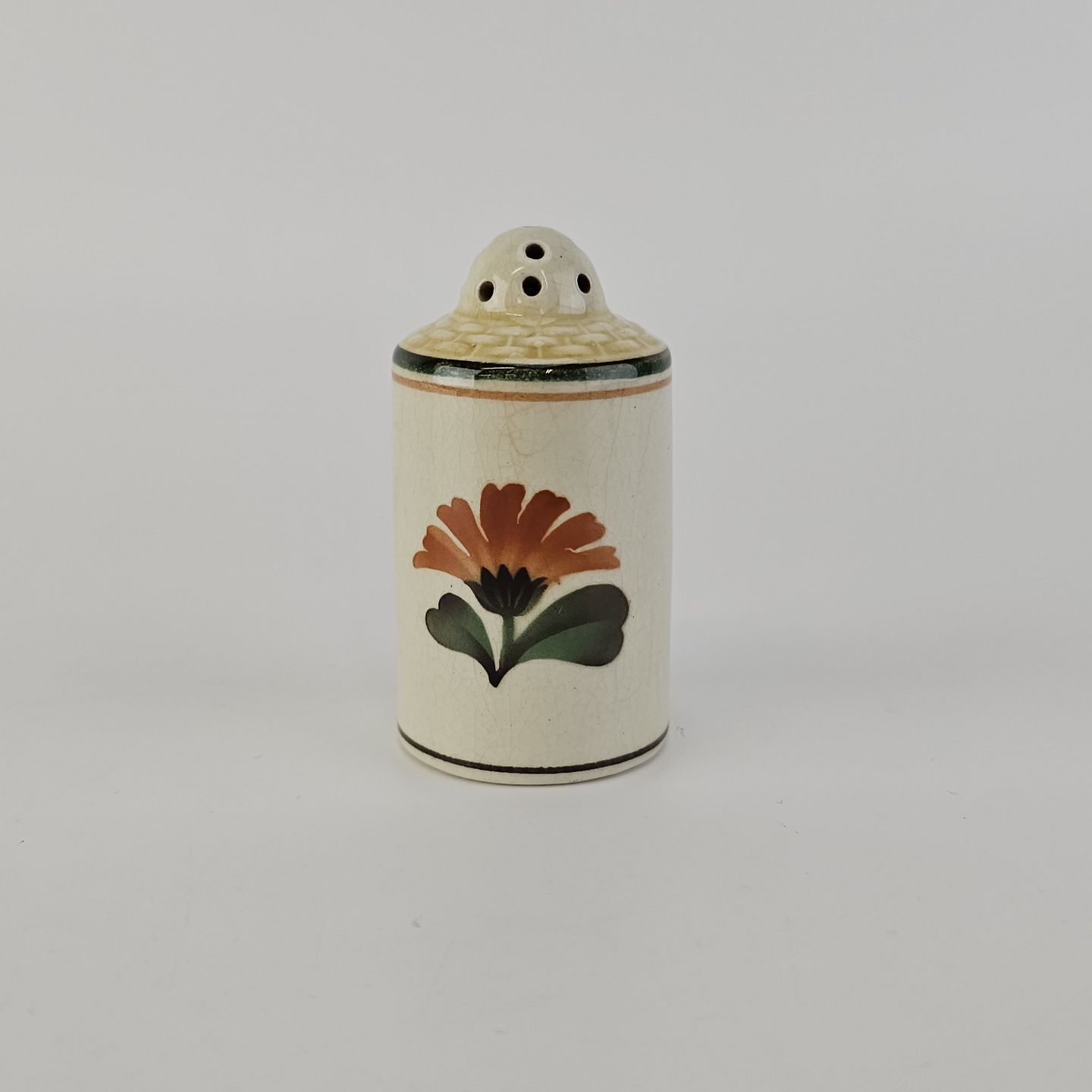 Saltbøsse eller peberbøsse i fajance fra stellet Morgenfrue
