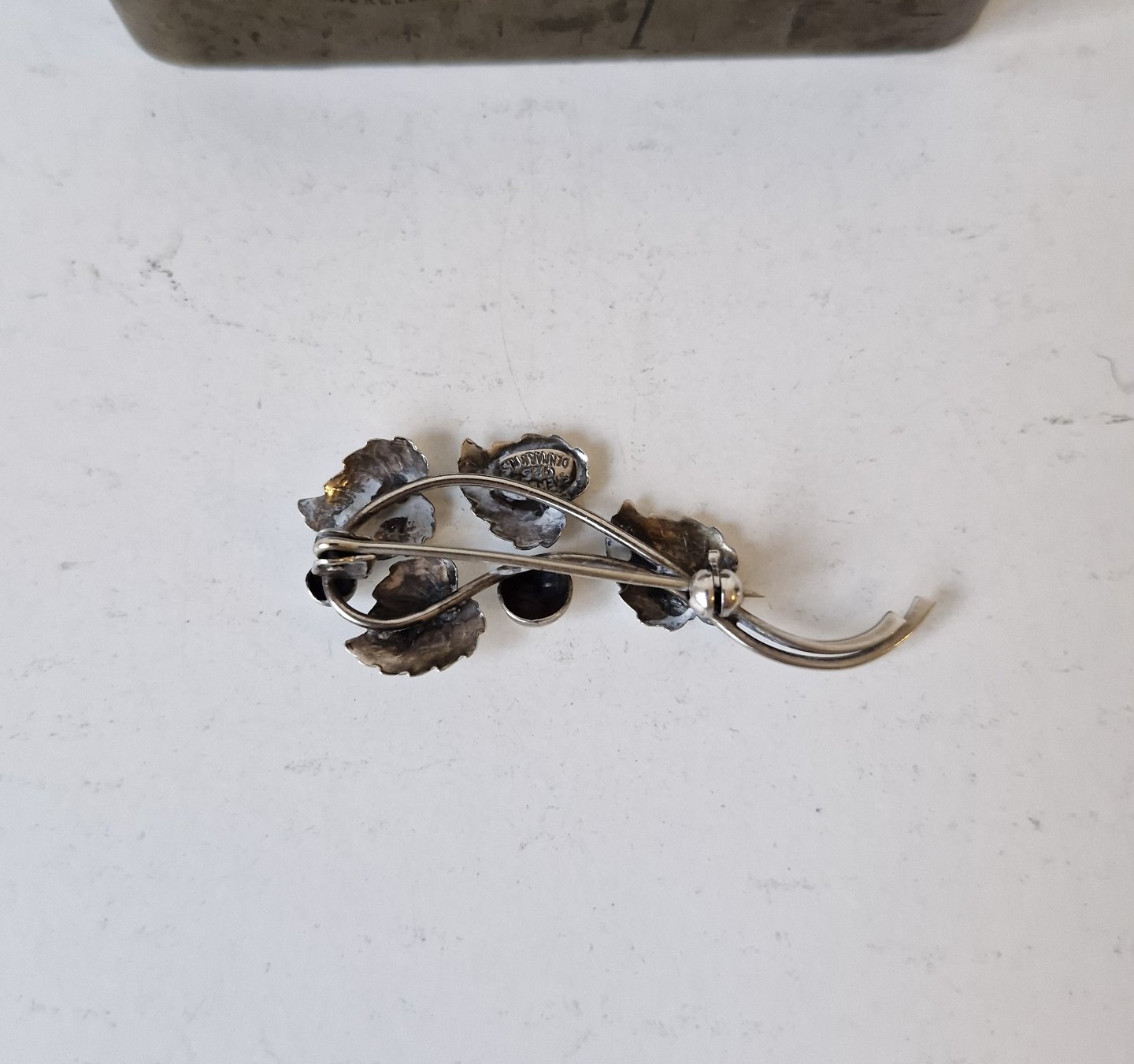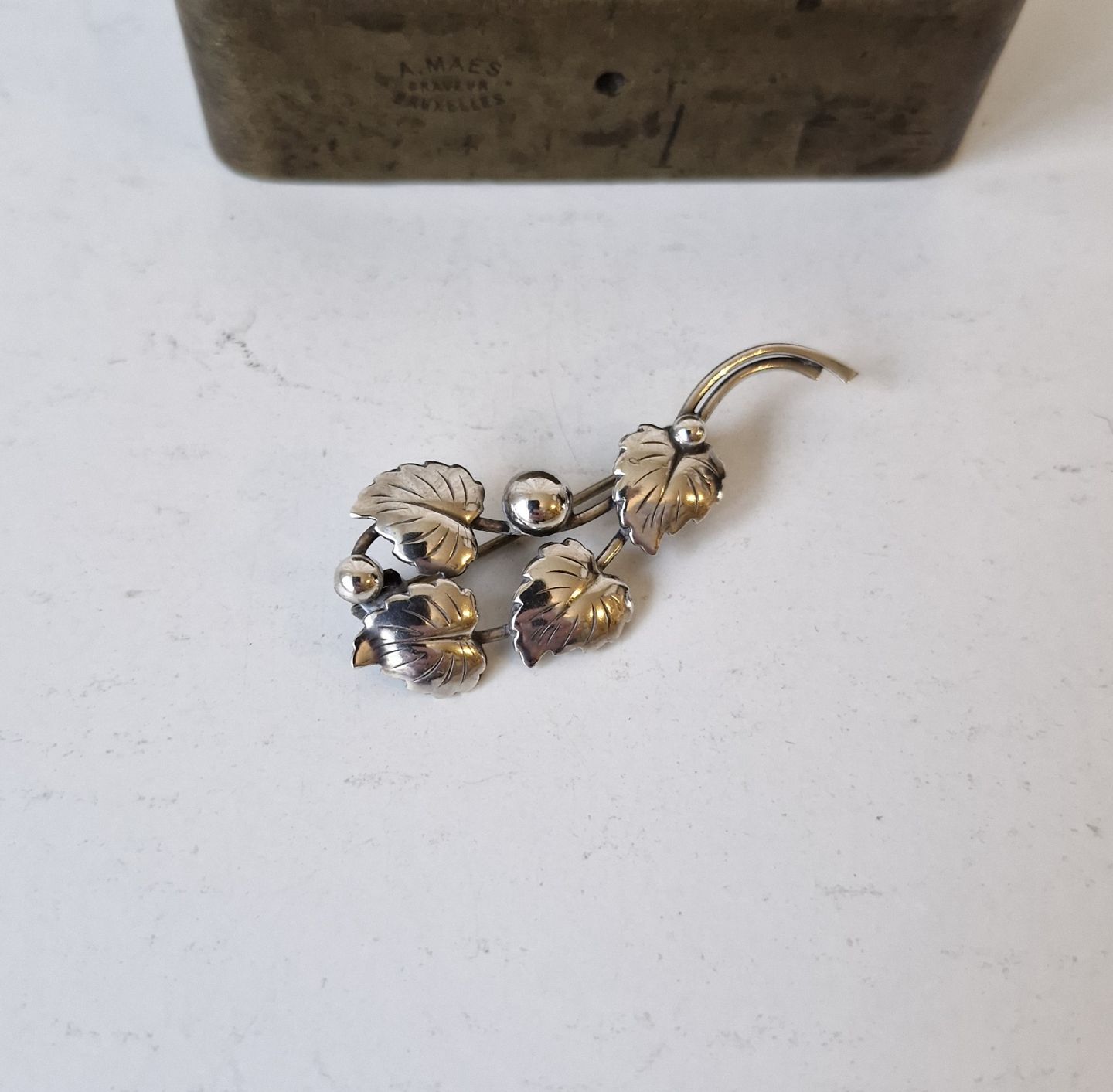 Vintage sølv broche i form af gren med små blade af Hermann Siersbøl