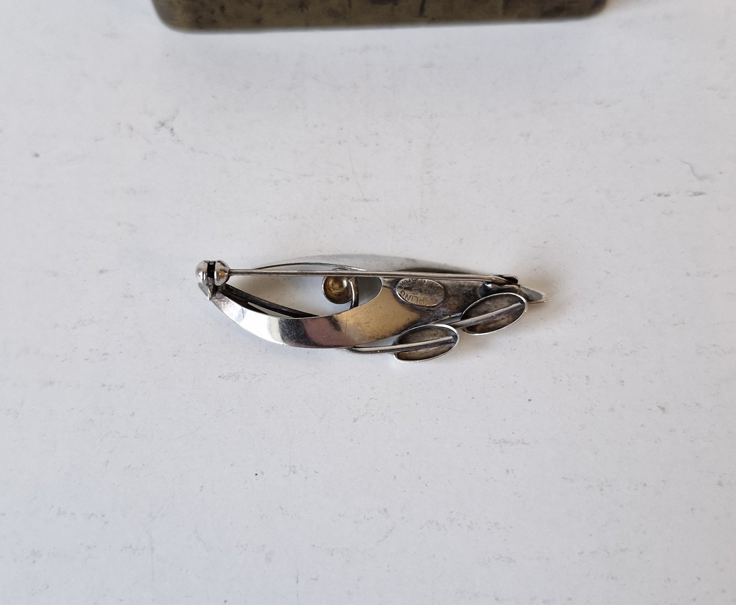 Vintage bladformet sølvbroche af Hermann Siersbøl