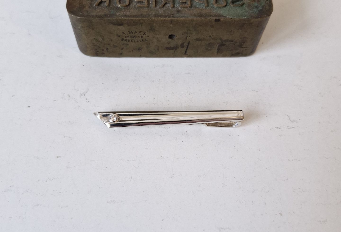 Slipsenål i sterlingsølv med klar sten