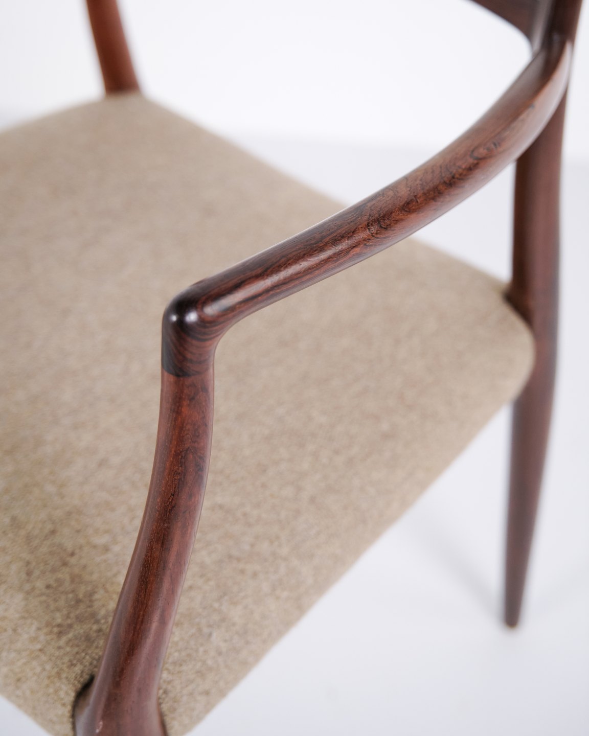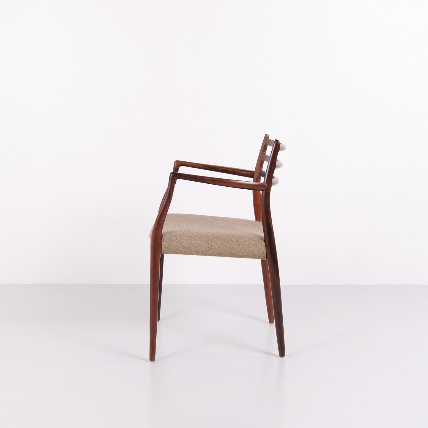 Sæt armstole, model 62, designet af Niels Otto Møller i 1962. Stolene er udført i palisander og er kendt for deres slanke konstruktion, præcise snedkerdetaljer og ergonomiske opbygning. Model 62 regnes blandt Niels Otto Møllers mest anerkendte stole og er et markant eksempel på dansk møbeldesign fra begyndelsen af 1960’erne.