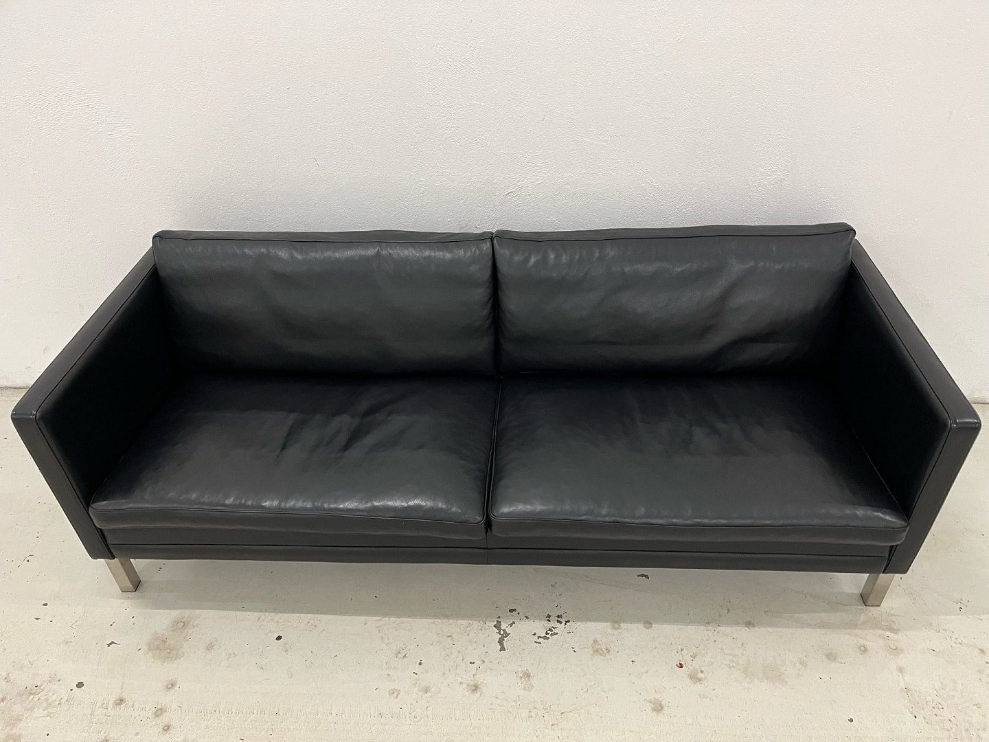 Eksklusiv 3-personers sofa, model MH276, designet af Mogens Hansen. Sofaen er udført i Loke læder, gruppe 2, i farven Black med elegante ben i børstet stål.
