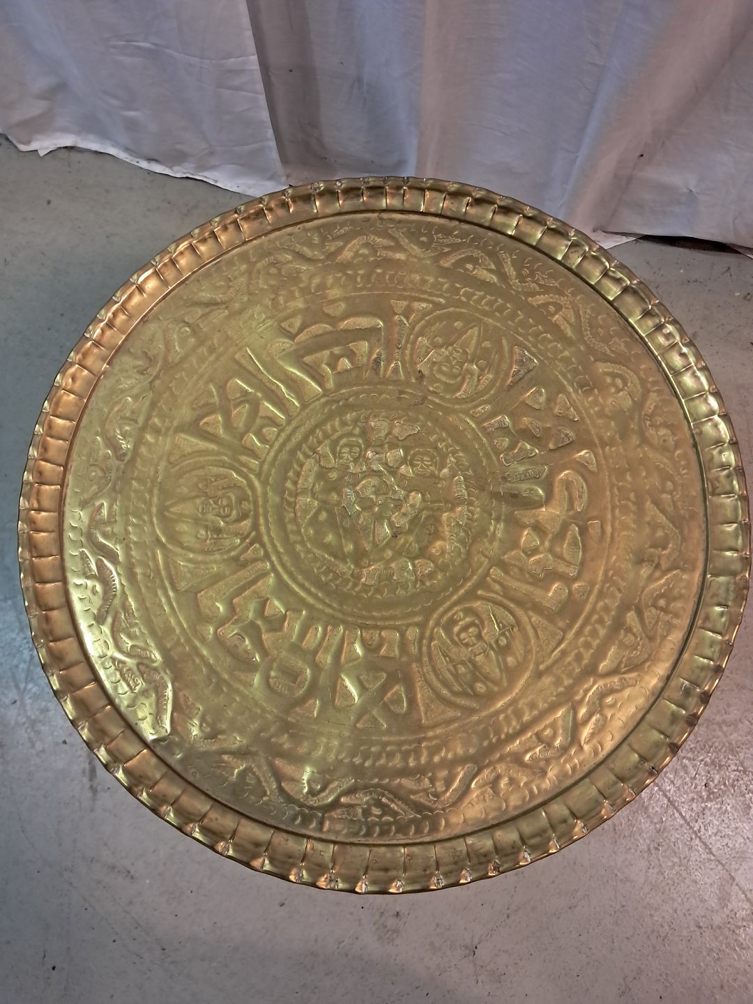 Pyntebord i massivt træ med messingplade, fra 1980erne.