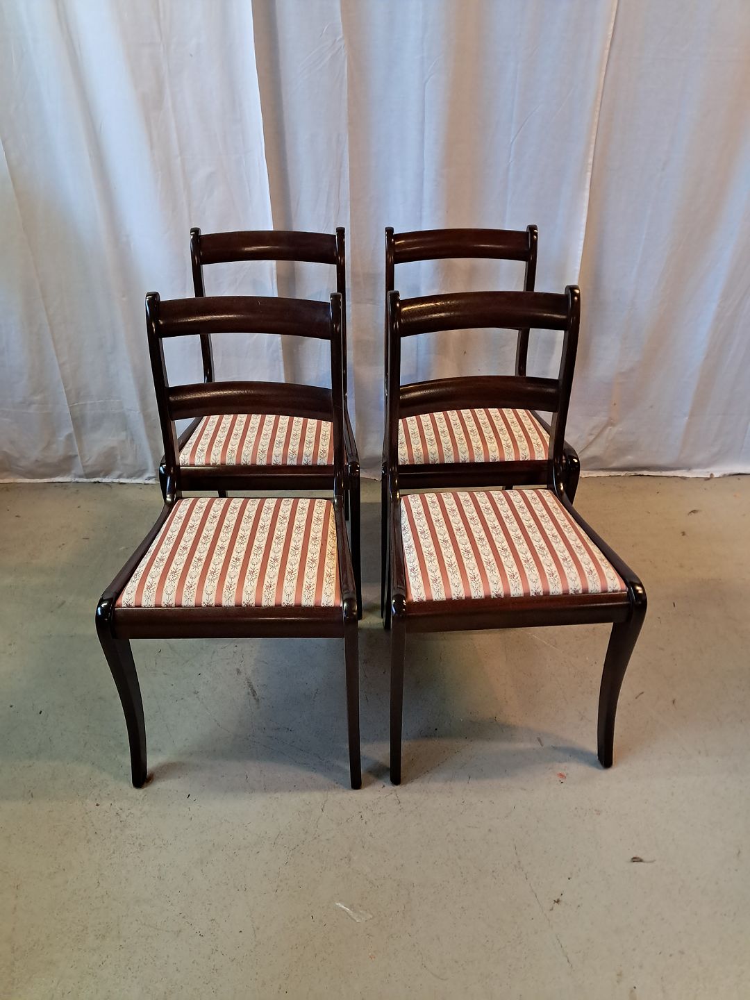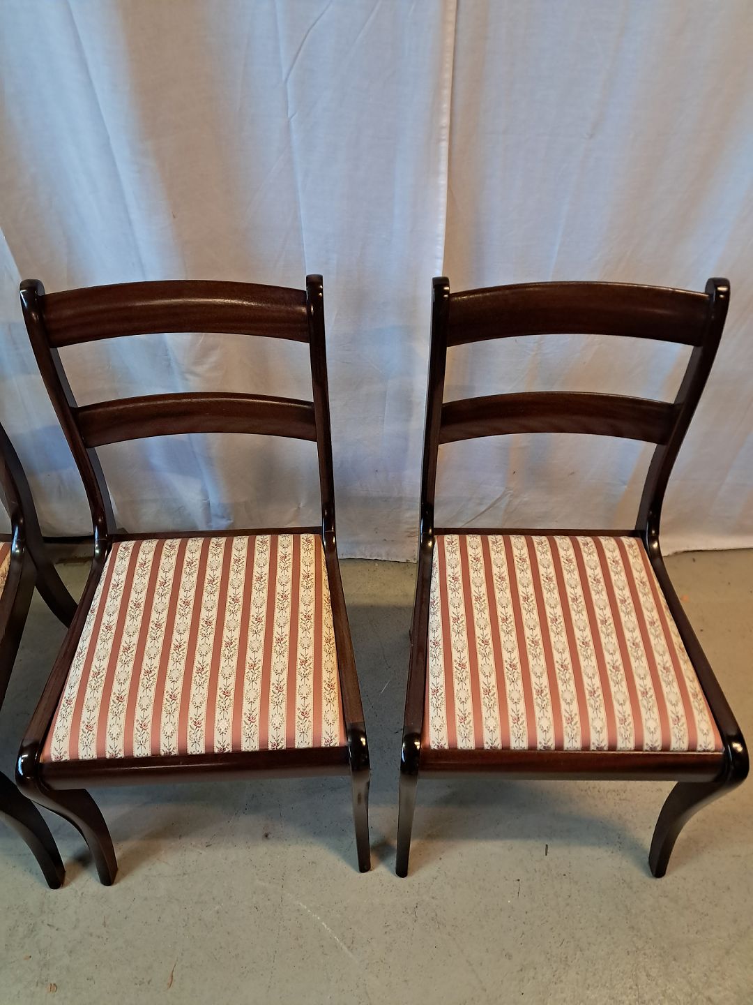 4 Stole i massivt mahogni og bøgetræ, fra 1980erne.
