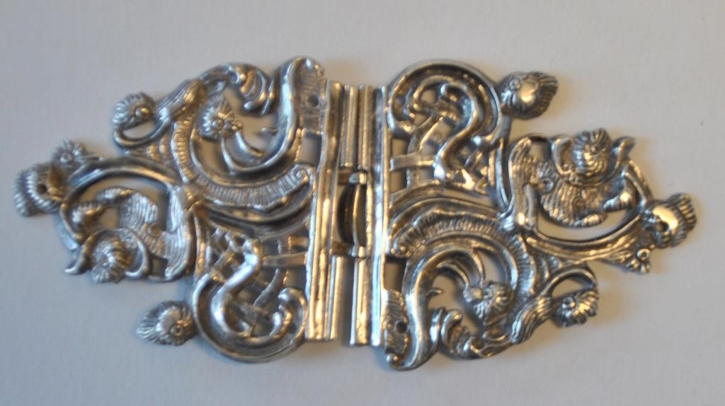Sølv bælte spænde, 19. årh. Rococo stil. Ustemplet. L.: 12 cm. H.: 5,5 cm.
