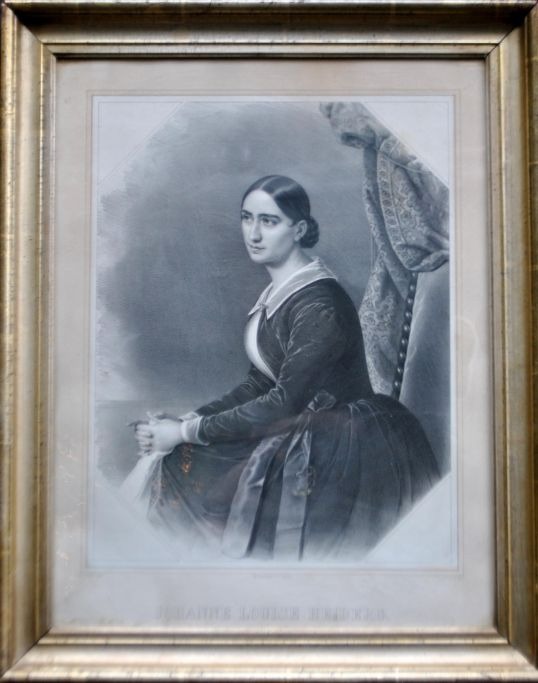 Antik sølvramme, 19. årh. Danmark. H: 59 cm. B: 46 cm. Med litografi af Johanne Louise Heiberg.