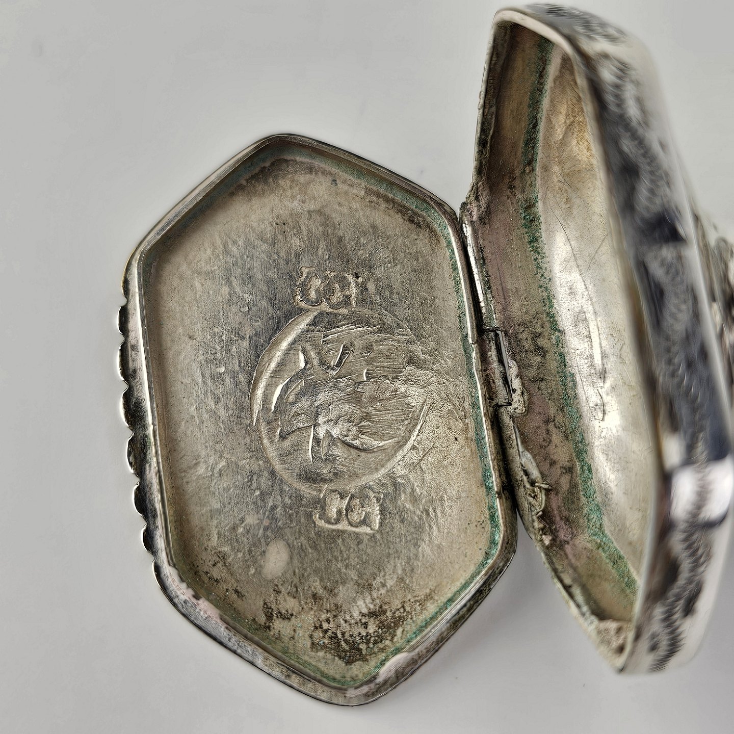 Hovedvandsæg i sølv dekoreret med forskellige smykkesten. Indgraveret under bunden med et hjerte, initialer og årstallet 1955