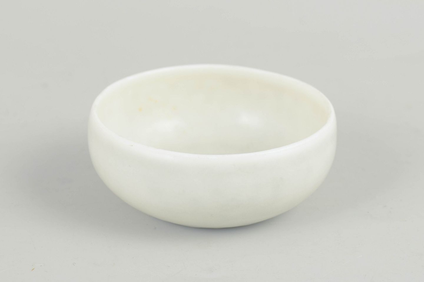 Lille rund skål i drejet stentøj med hvid, let satinmat glasur og blødt afrundet form. Dekoreret i enkelt og stilrent udtryk, typisk for Stålhånes formsprog.