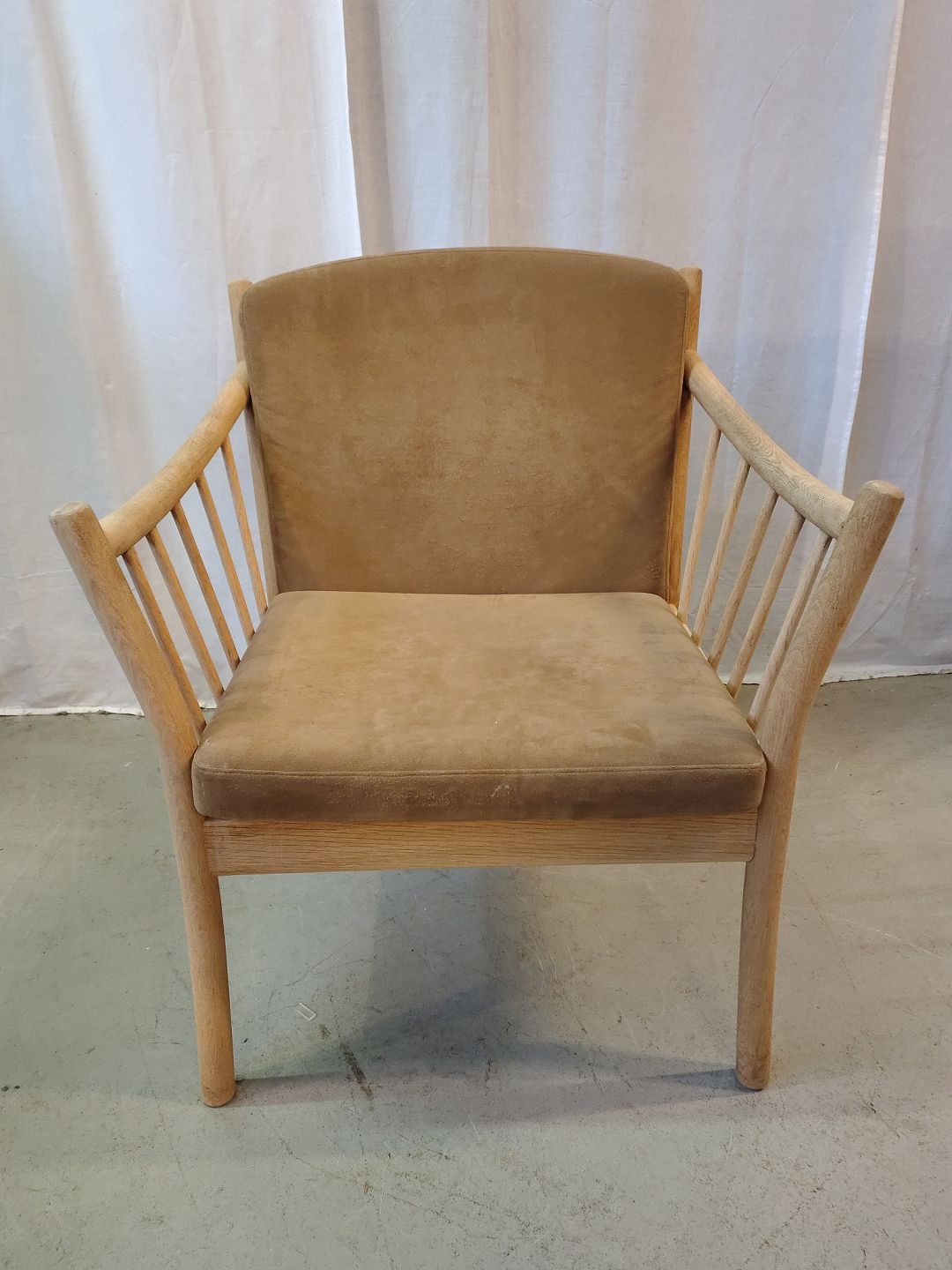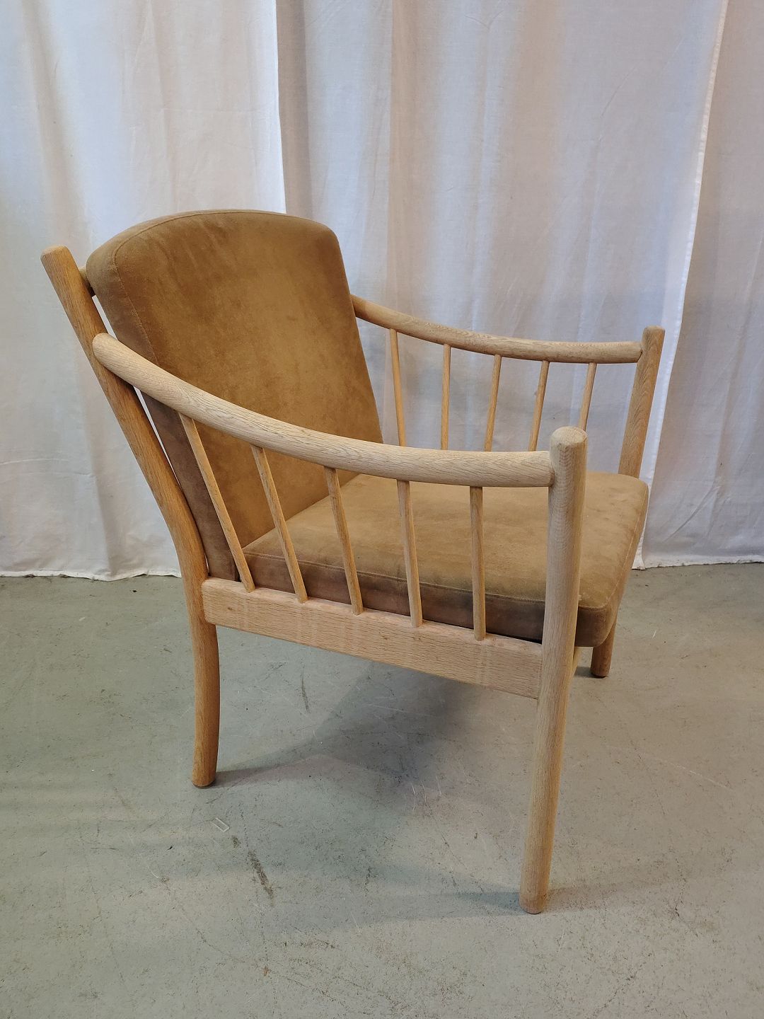 Lænestol i massivt egetræ med kunst rugskind, fra 2000erne.