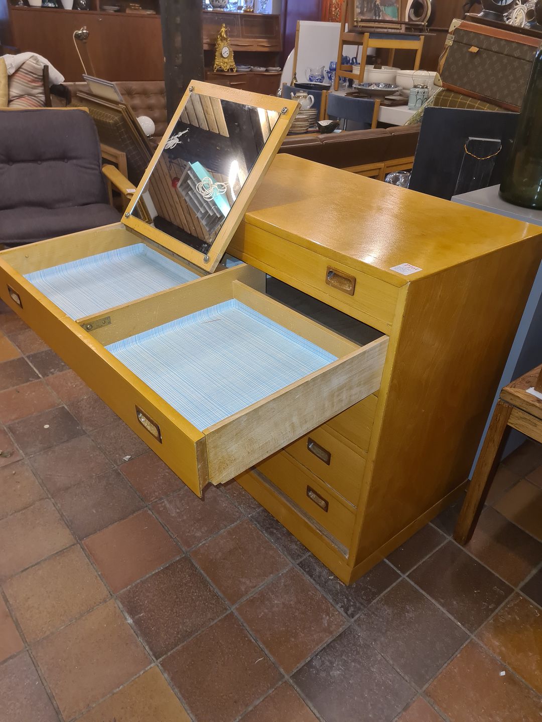 Børge Mogensen kommode m. sminkespejl. udført i lakeret bøg m. greb i teak.