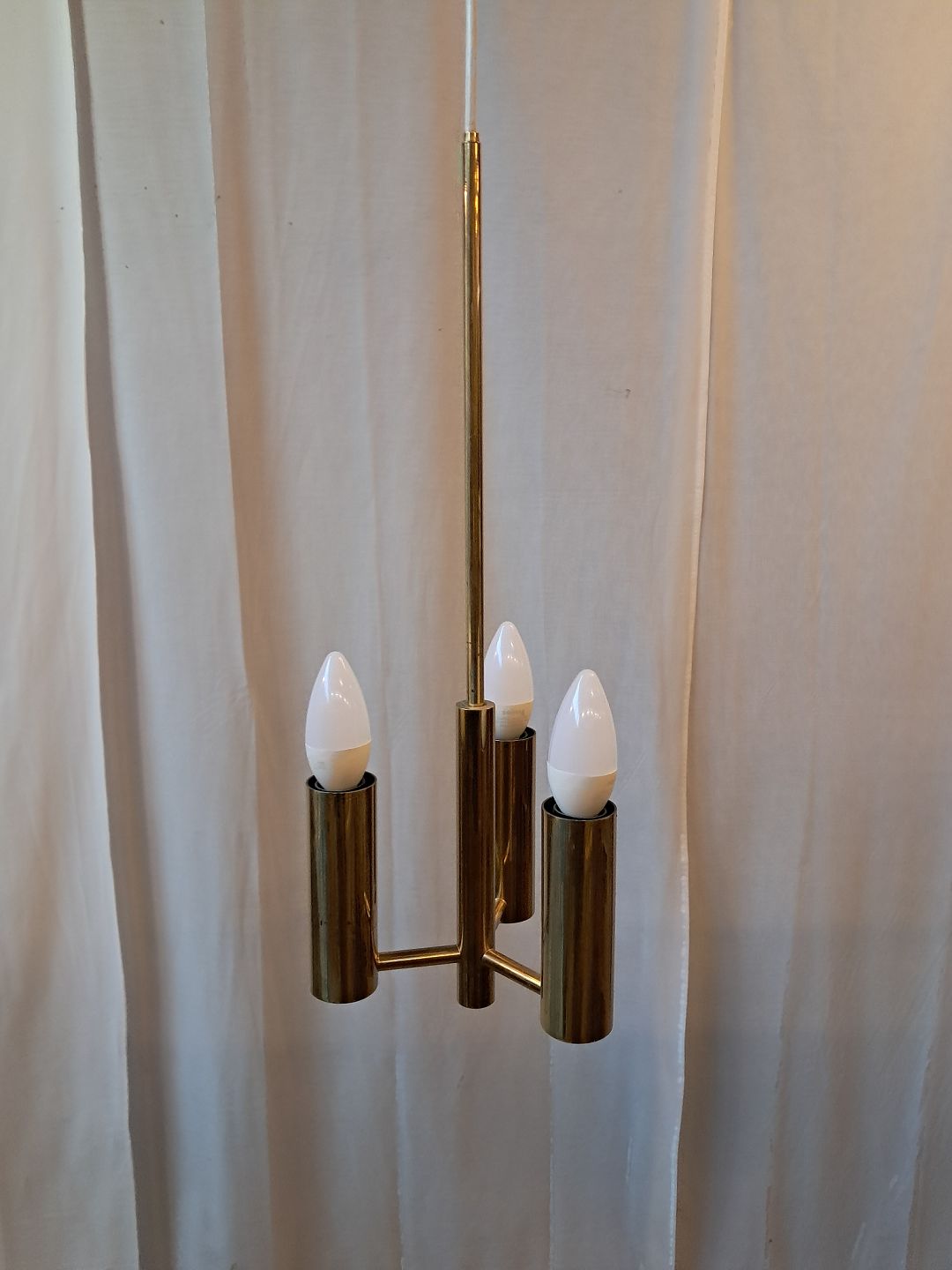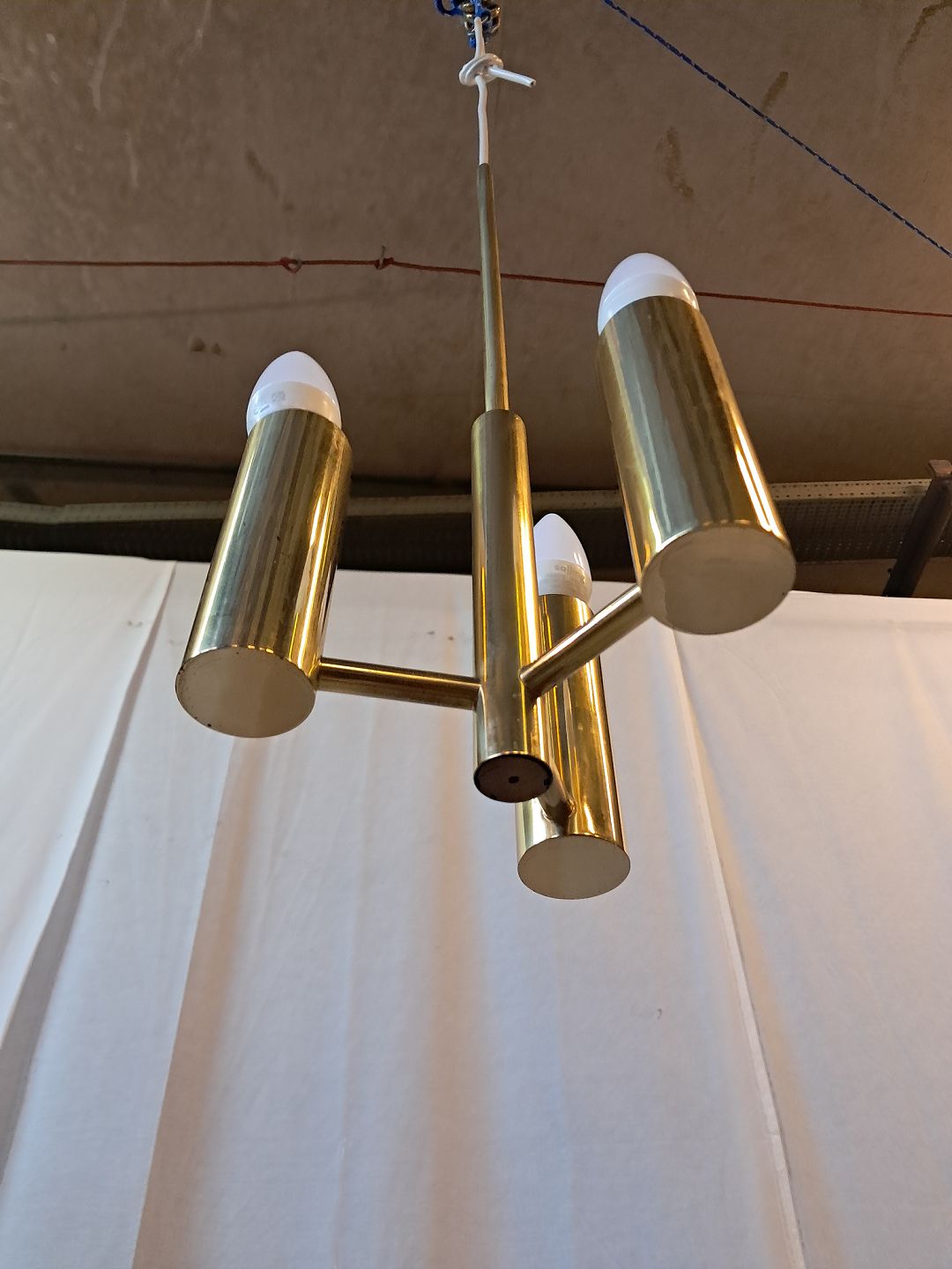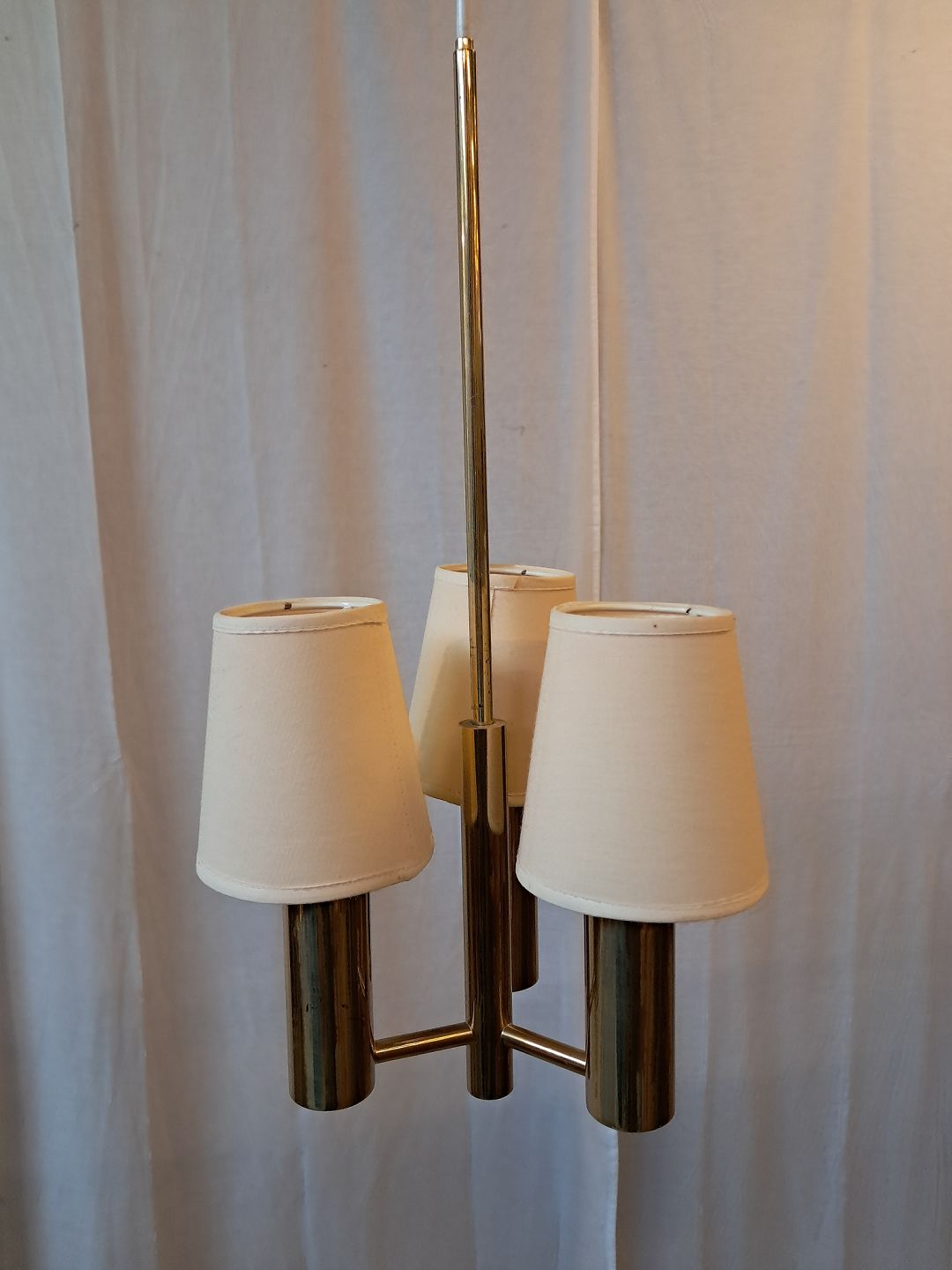 Loftlampe i messing med skærme, fra 1950erne.