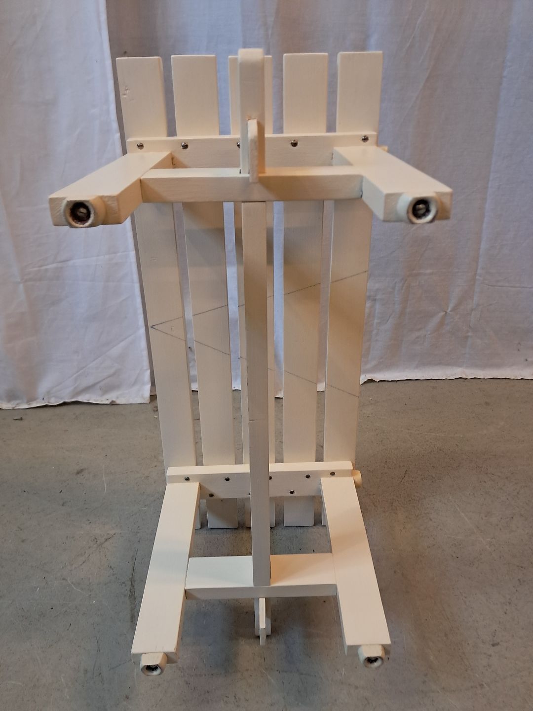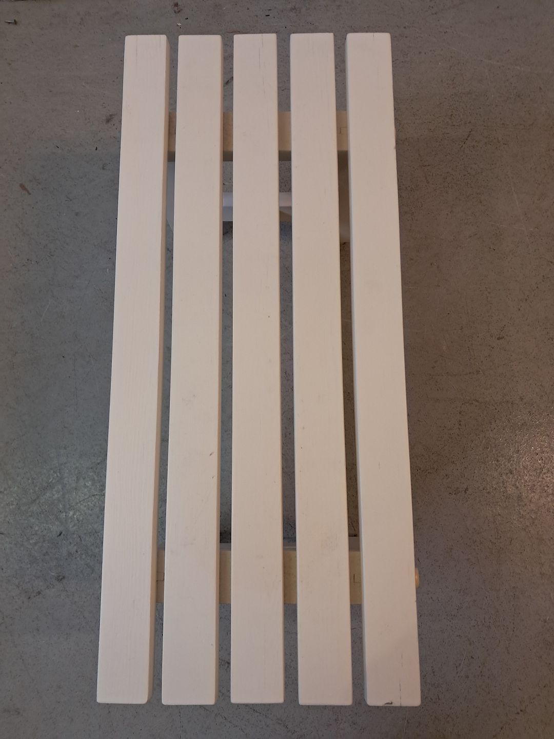 Malet bænk i massivvt fyrretræ, fra 1970erne.