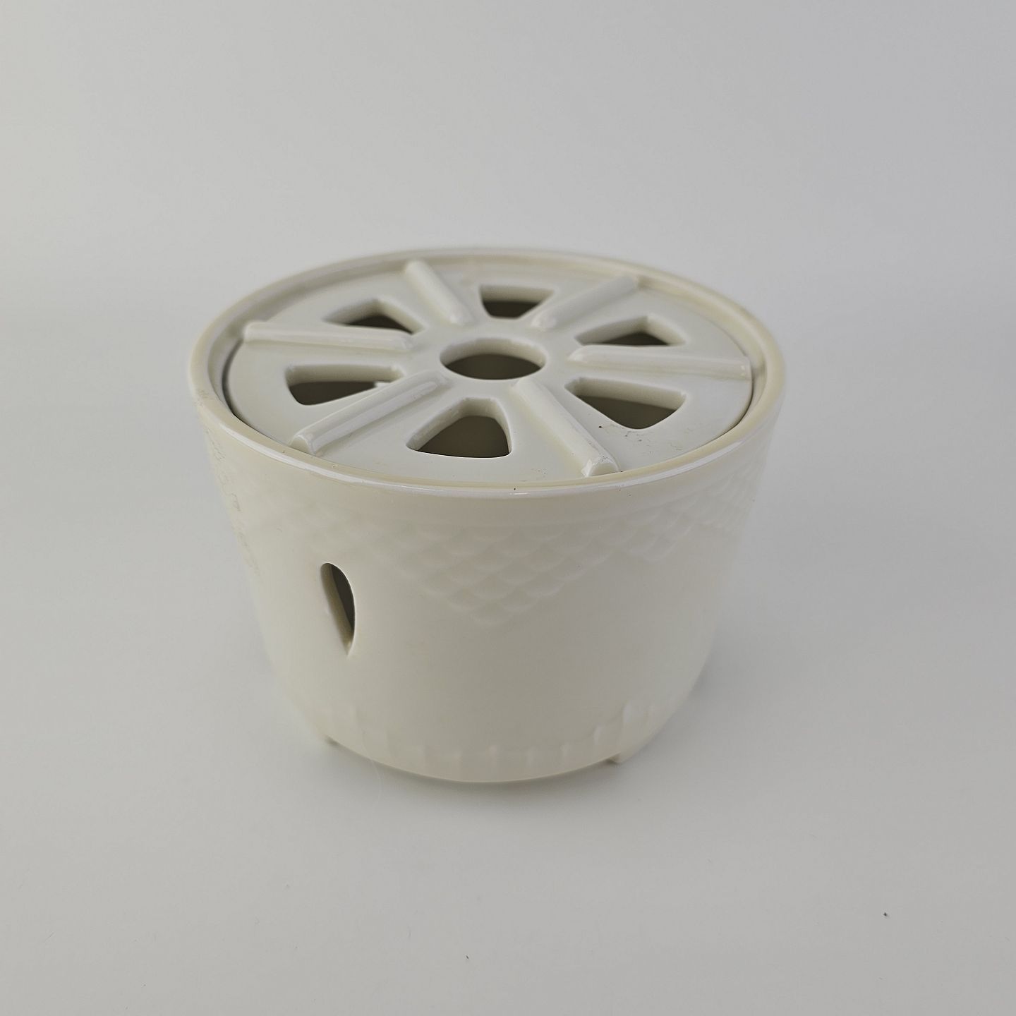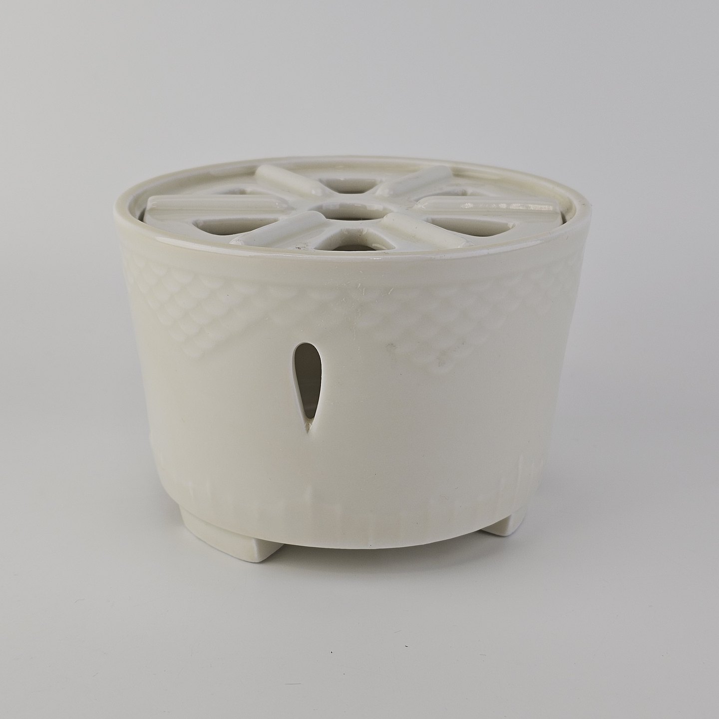 Elegance er cremefarvet glaseret porcelæn med skæl mønster