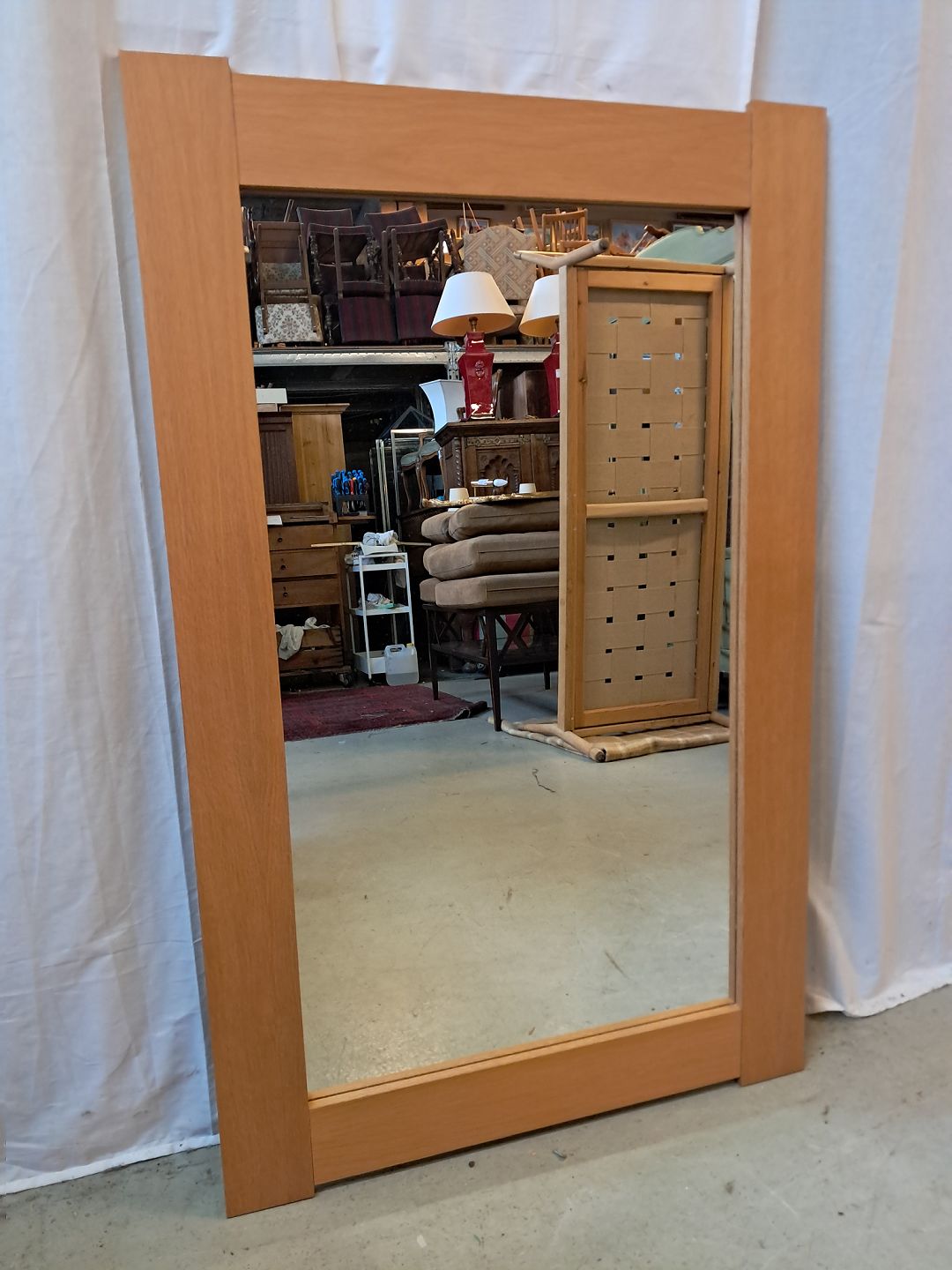 Spejl i fineret egetræ, fra 1970erne.