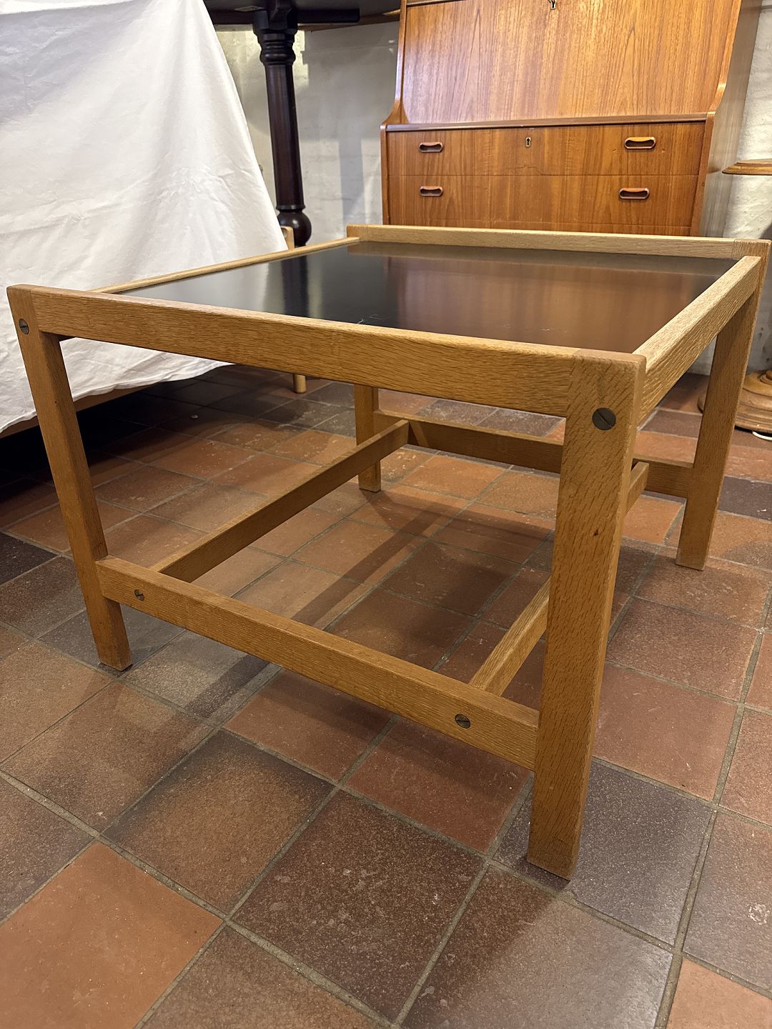 Børge Mogensen sofabord model 5376. Udført med stel af eg samt plade af sort Formica. Fremstillet hos Frederica Stolefabrik 1968.