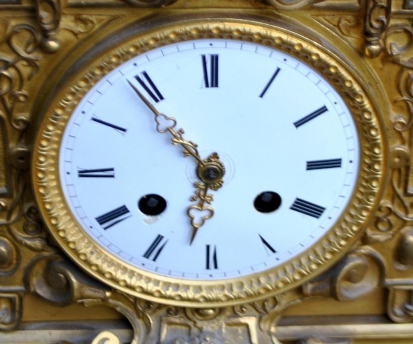 Fransk kaminur i lueforgyldt bronze, 1810 - 1820. Charles X.