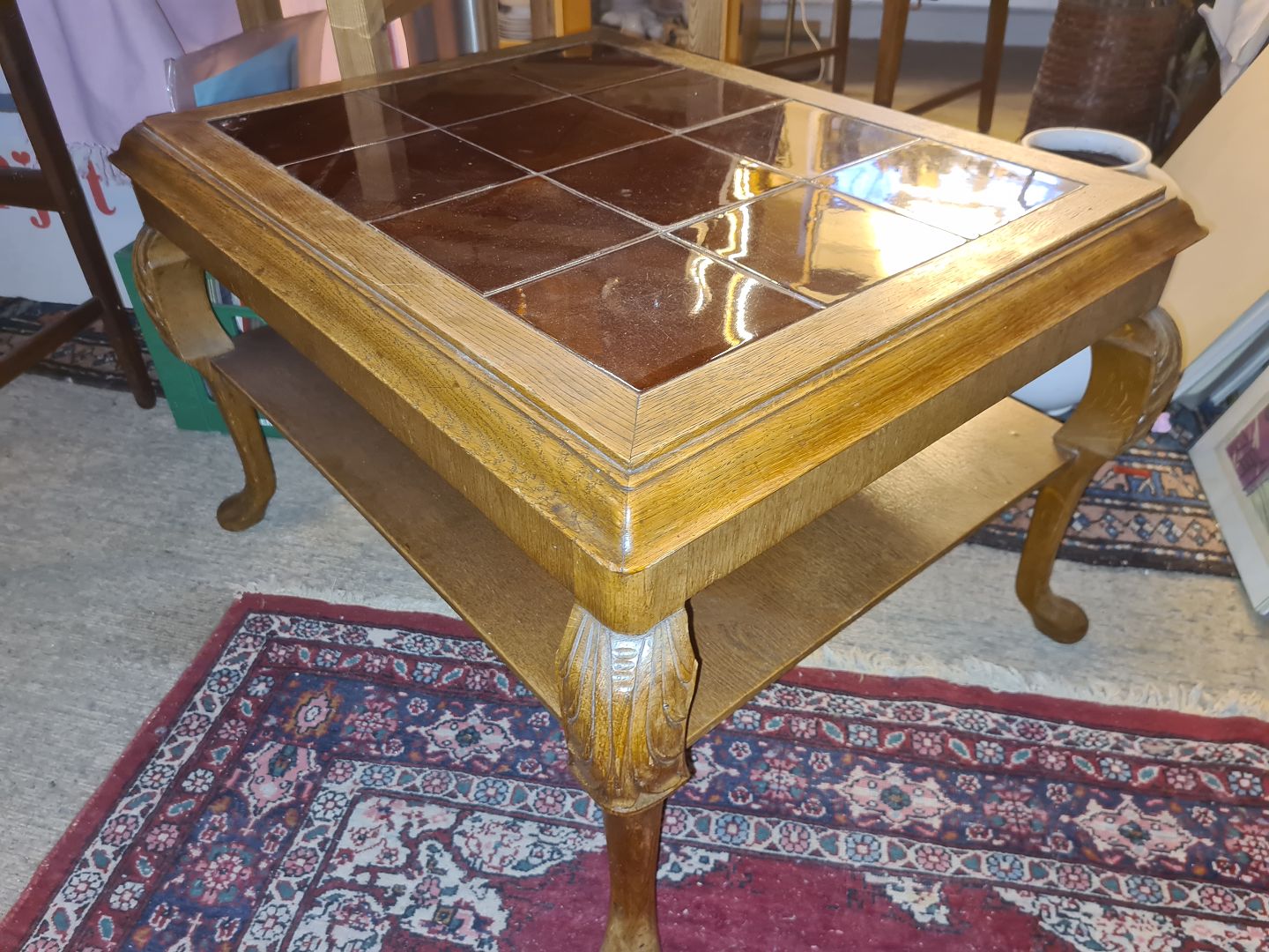 Sofabord i eg med kakler.