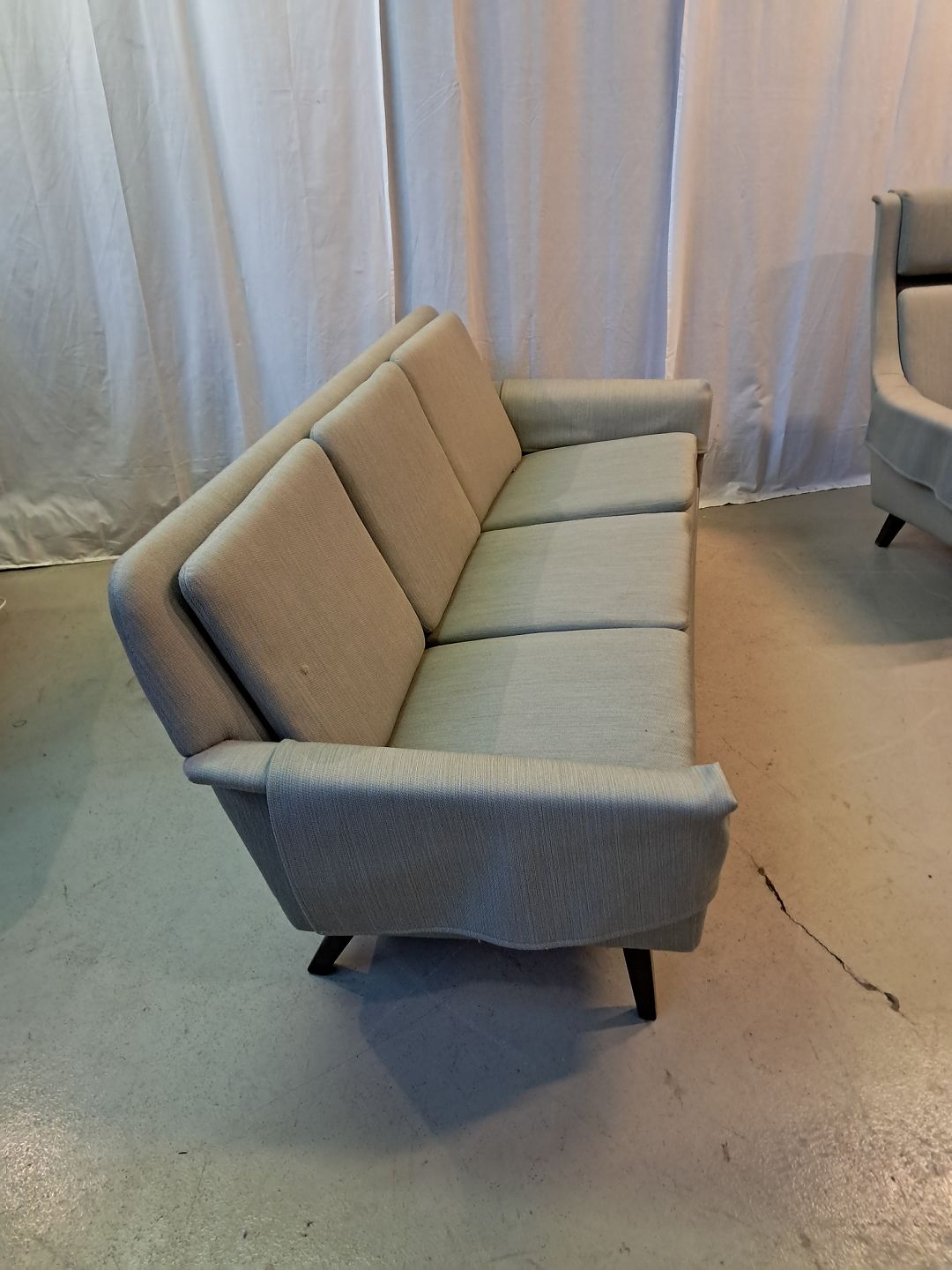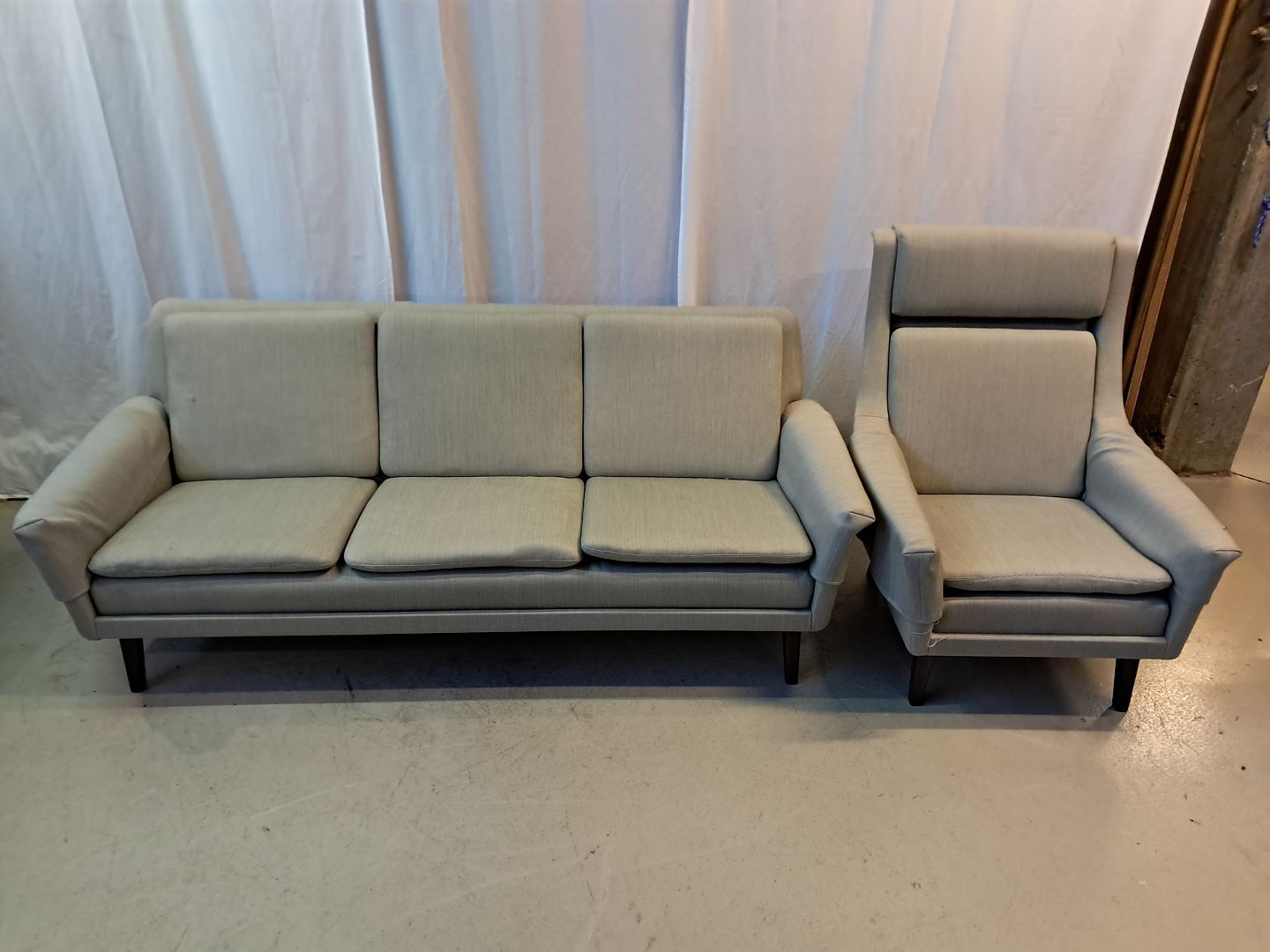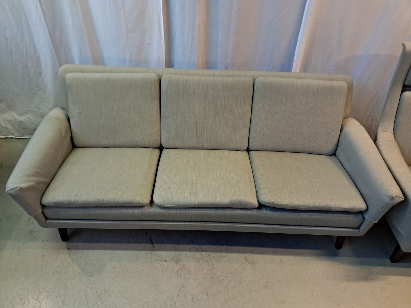 Text available in Danish: Folke Ohlsson overpolstret sofasæt betrukket med stofbetræk