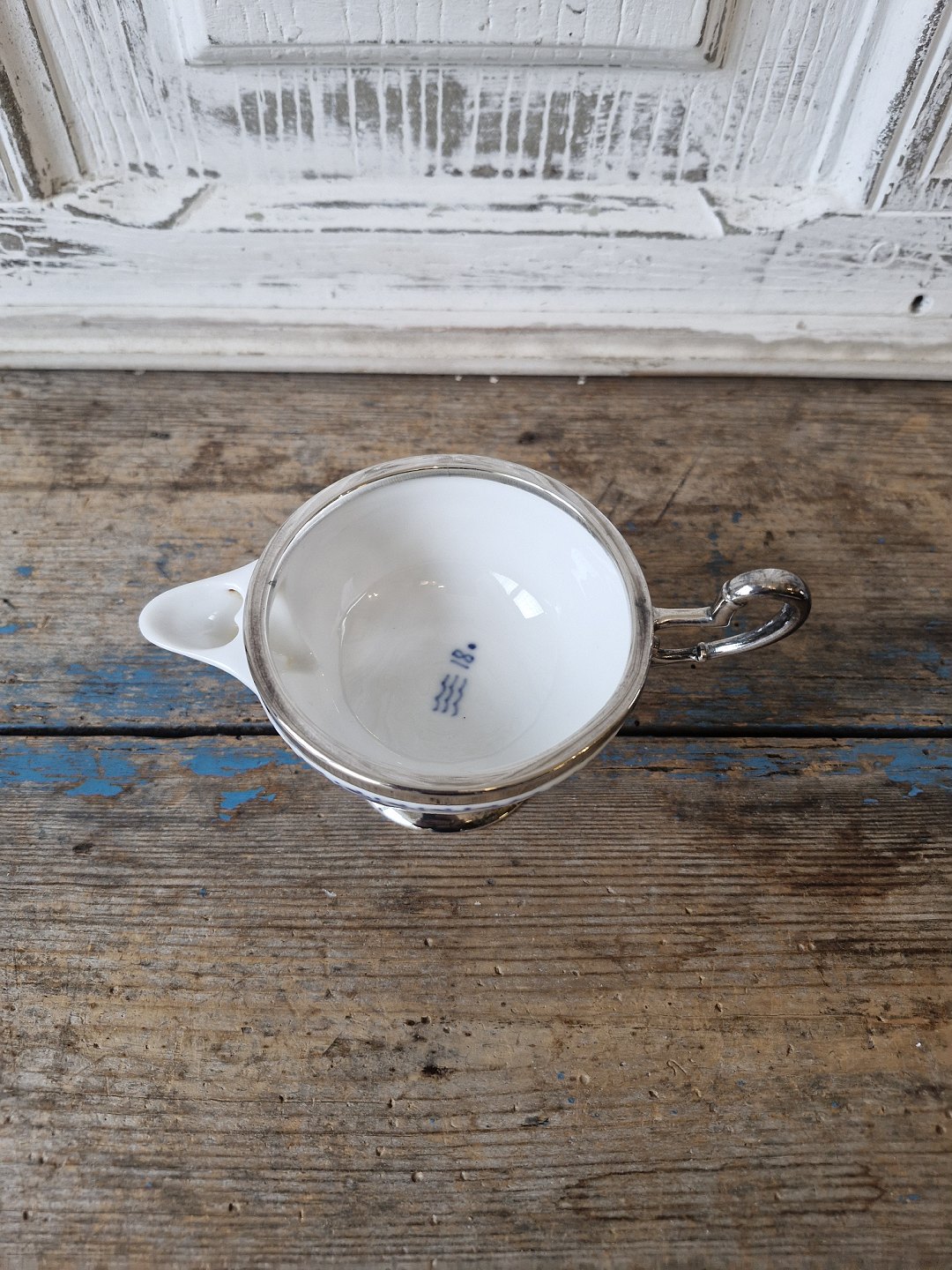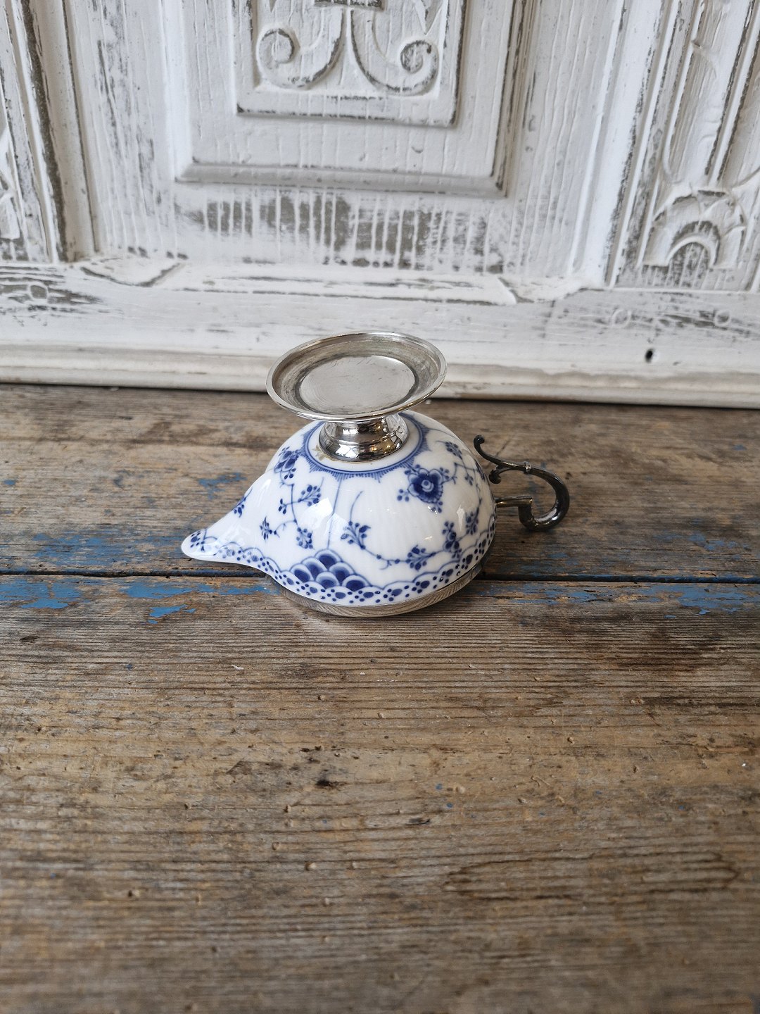 Royal Copenhagen Blue Fluted Half Lace Cream Jug with Silver Plated Mounting