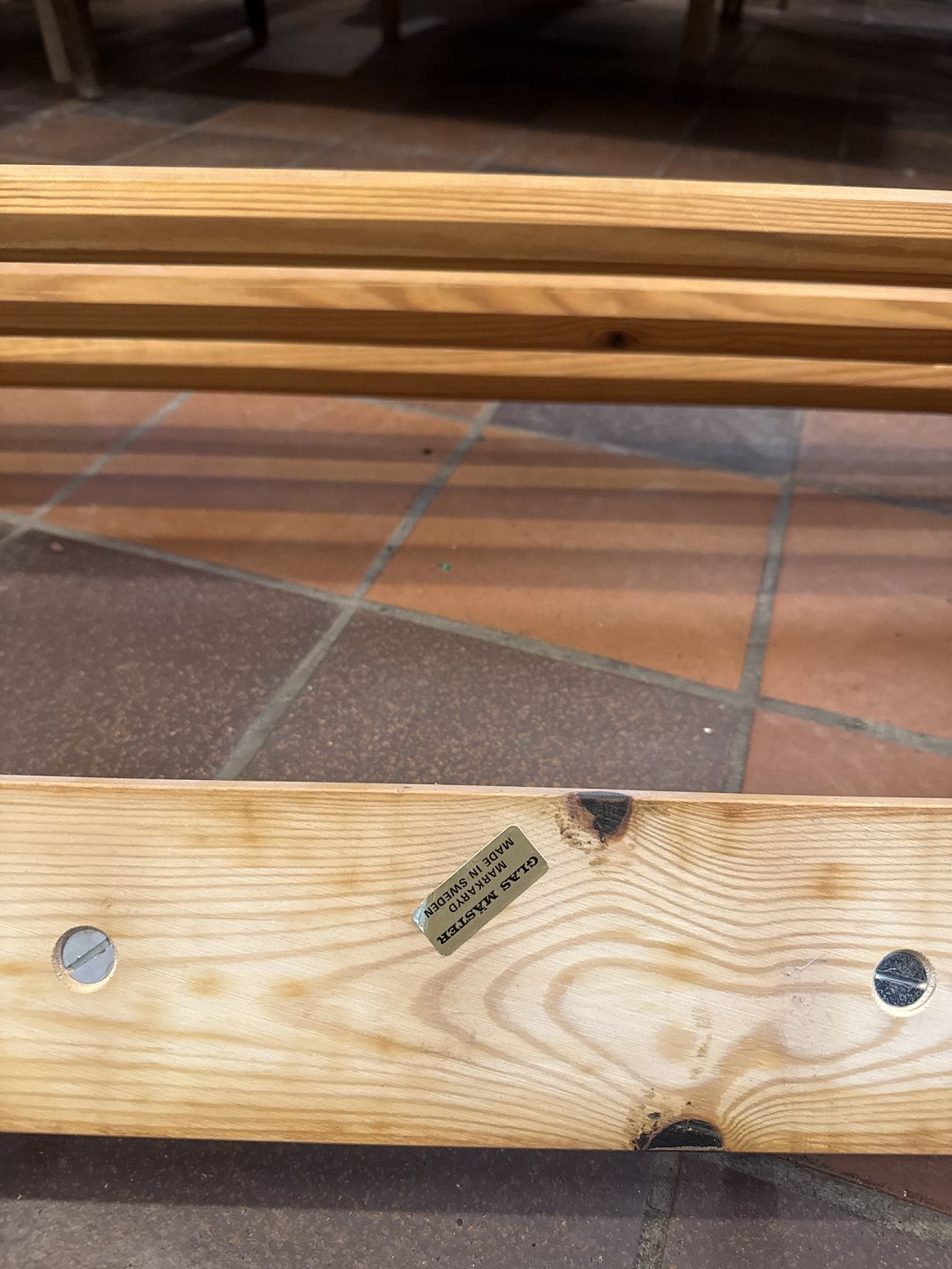 Svensk design væghængt knagerække/hattehylde i massiv fyr og knager i messing.