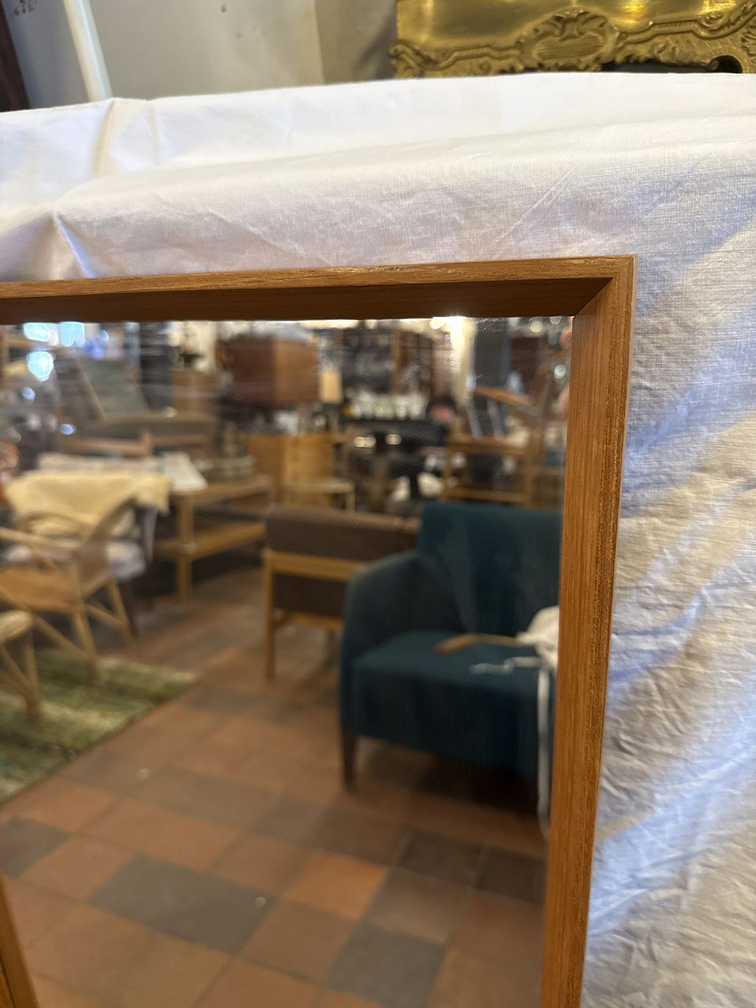 Spejl m. ramme i teak.