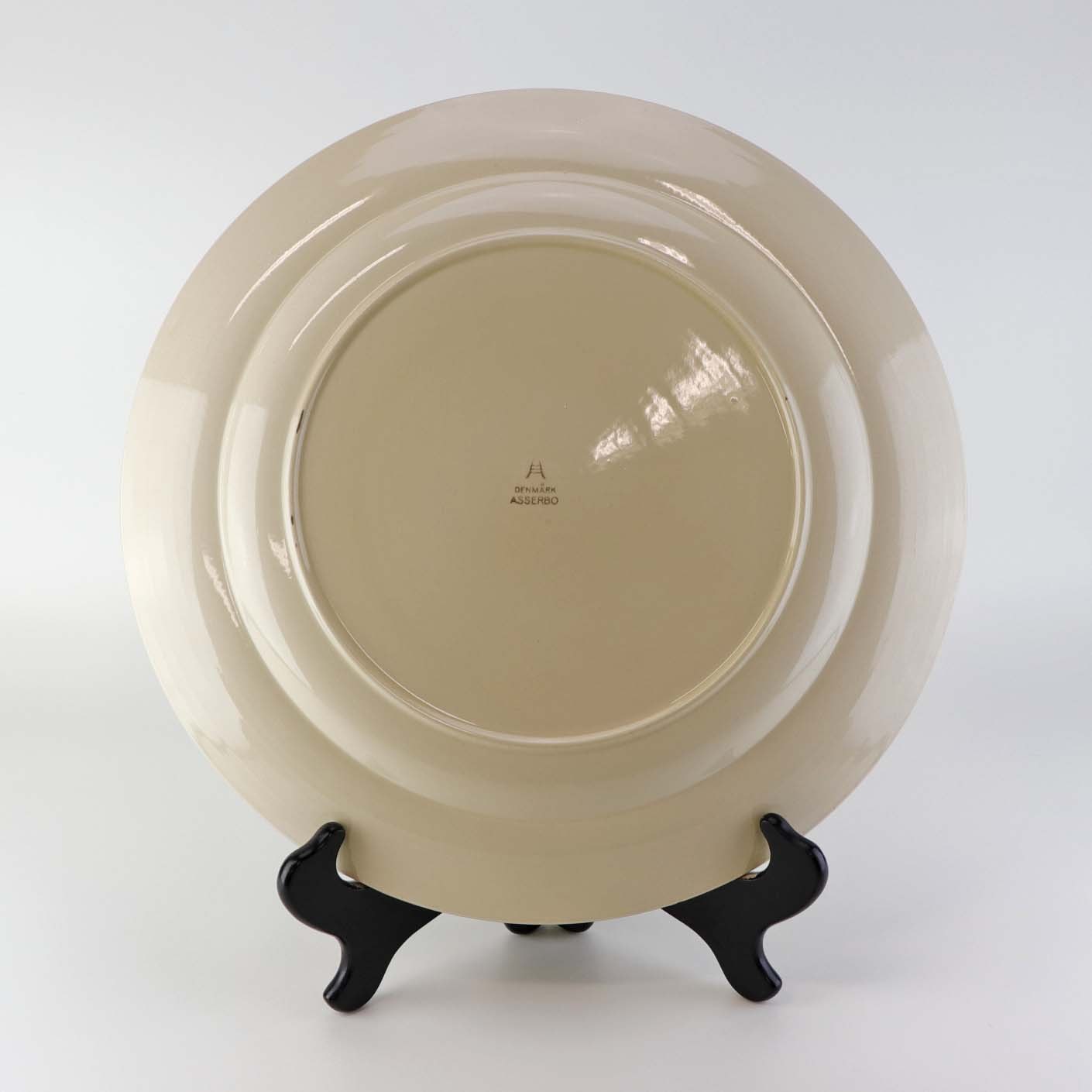 Stort rundt serveringsfad i fajance fra stellet Asserbo fremstillet i perioden 1933-1965