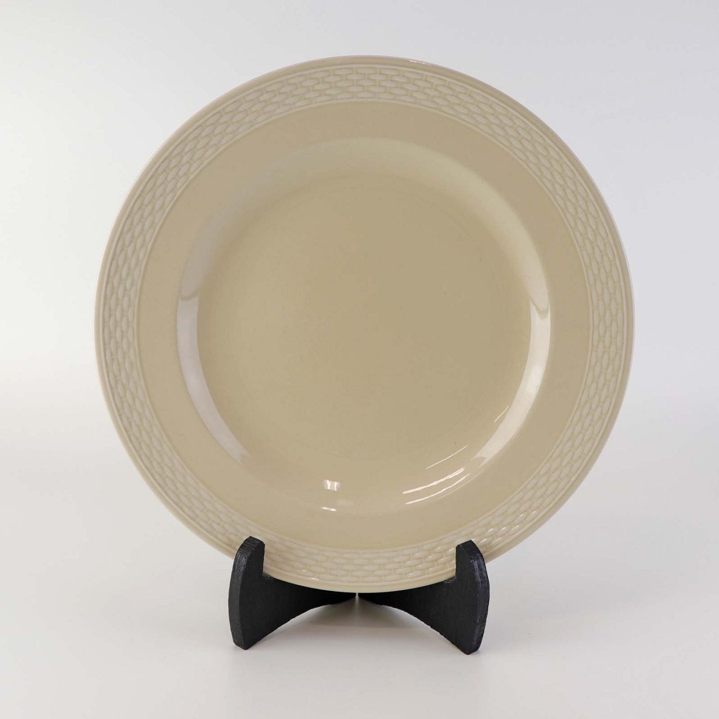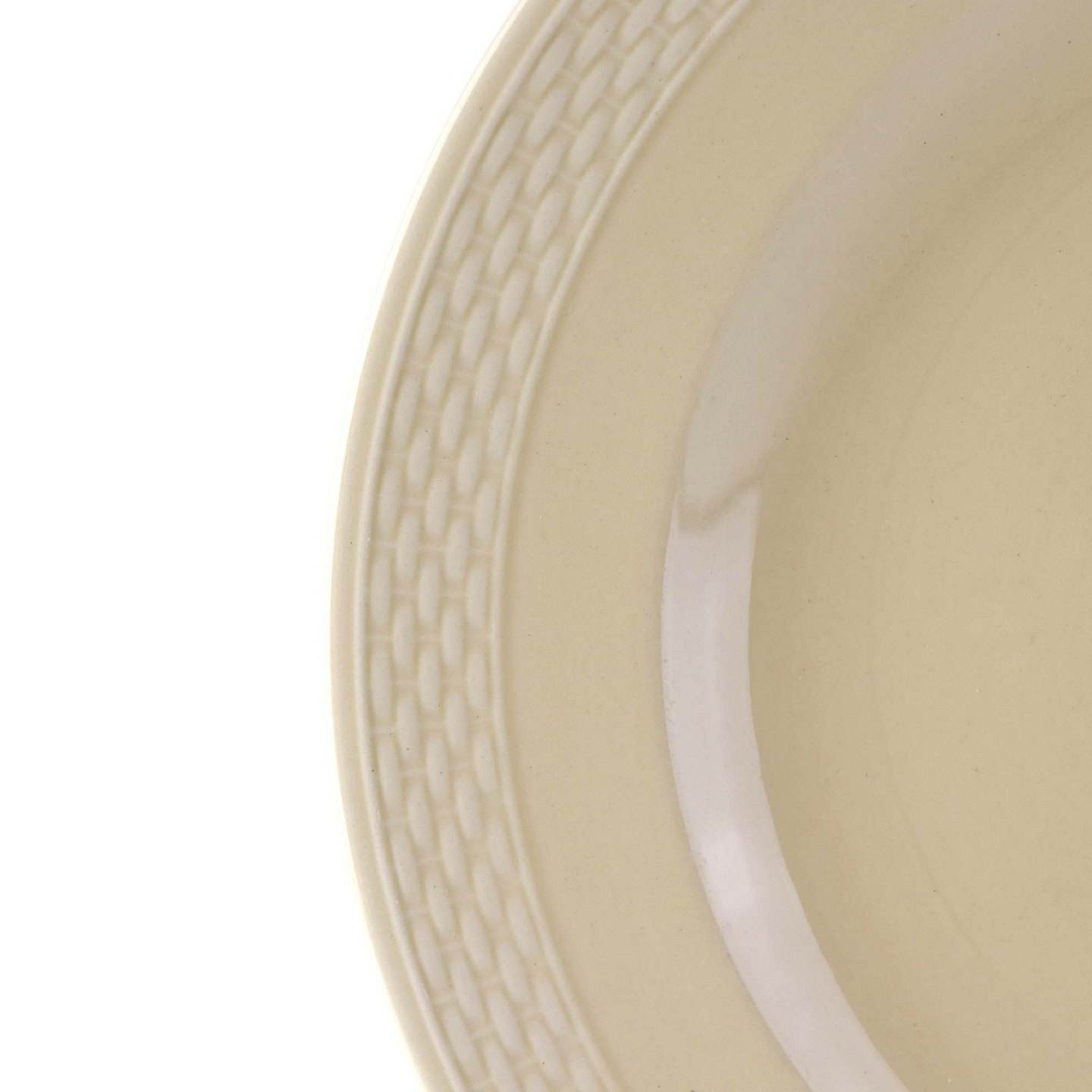 Sandfarvet fajancestel i stelform Viktoria II - Fletværk med dekoration af hvidt flet på gullig baggrund.