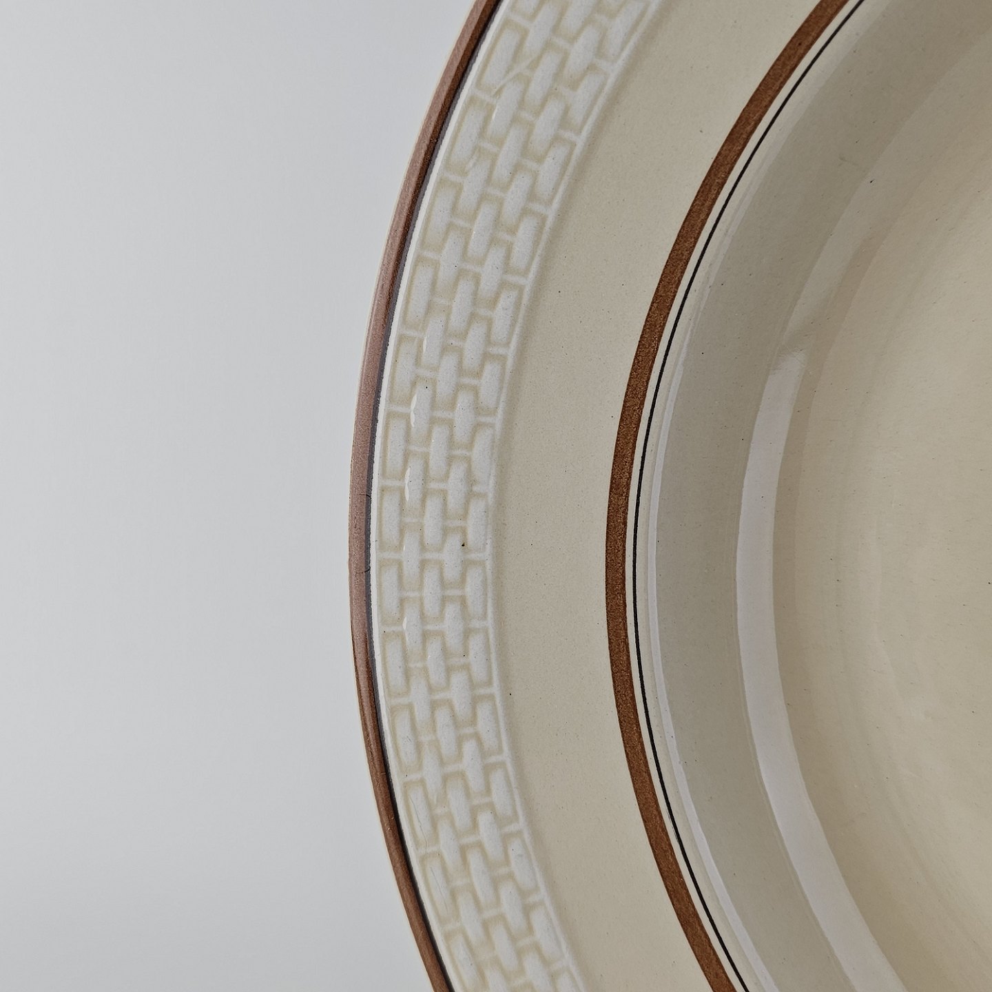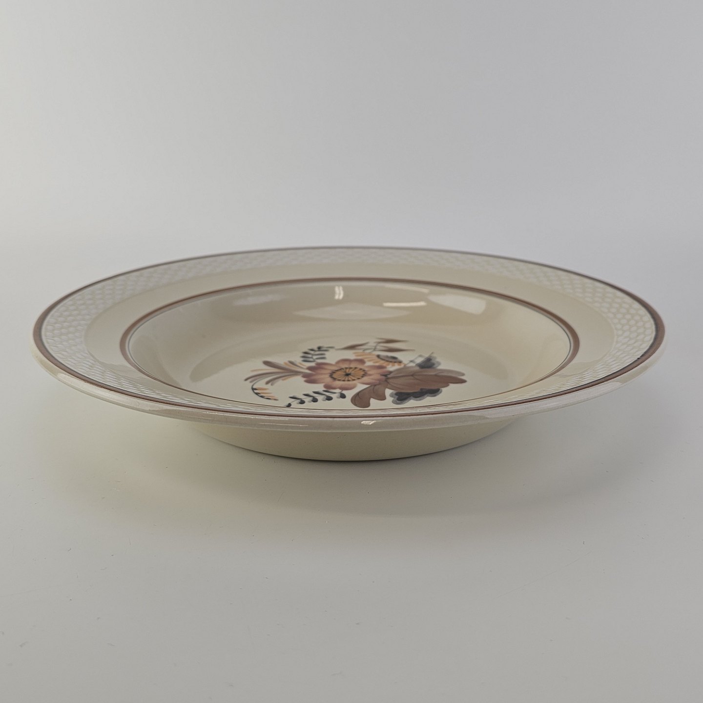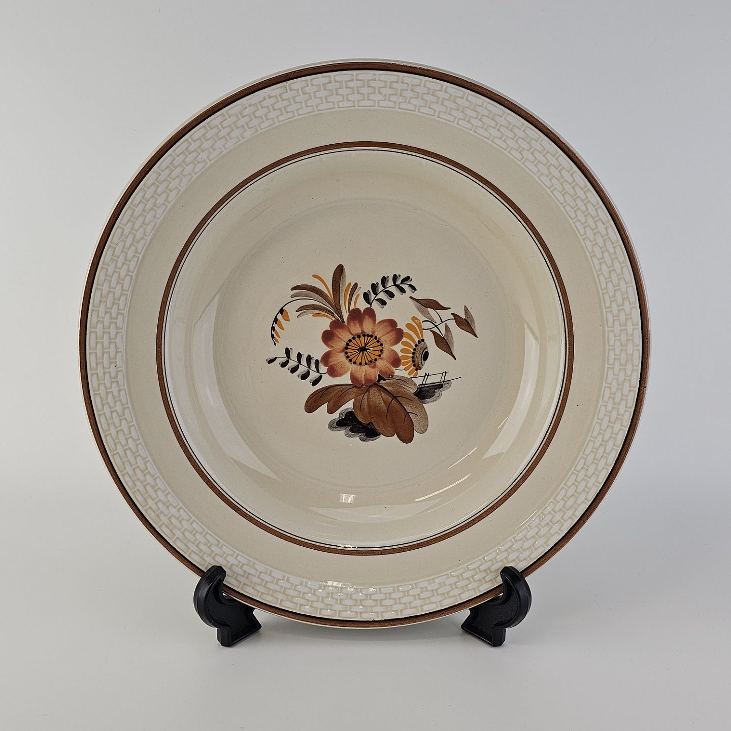 Knud er cremefarvet fajance dekoreret med flettet kant og brune og orange blomster. Stellet blev produceret i år 1934-1963.