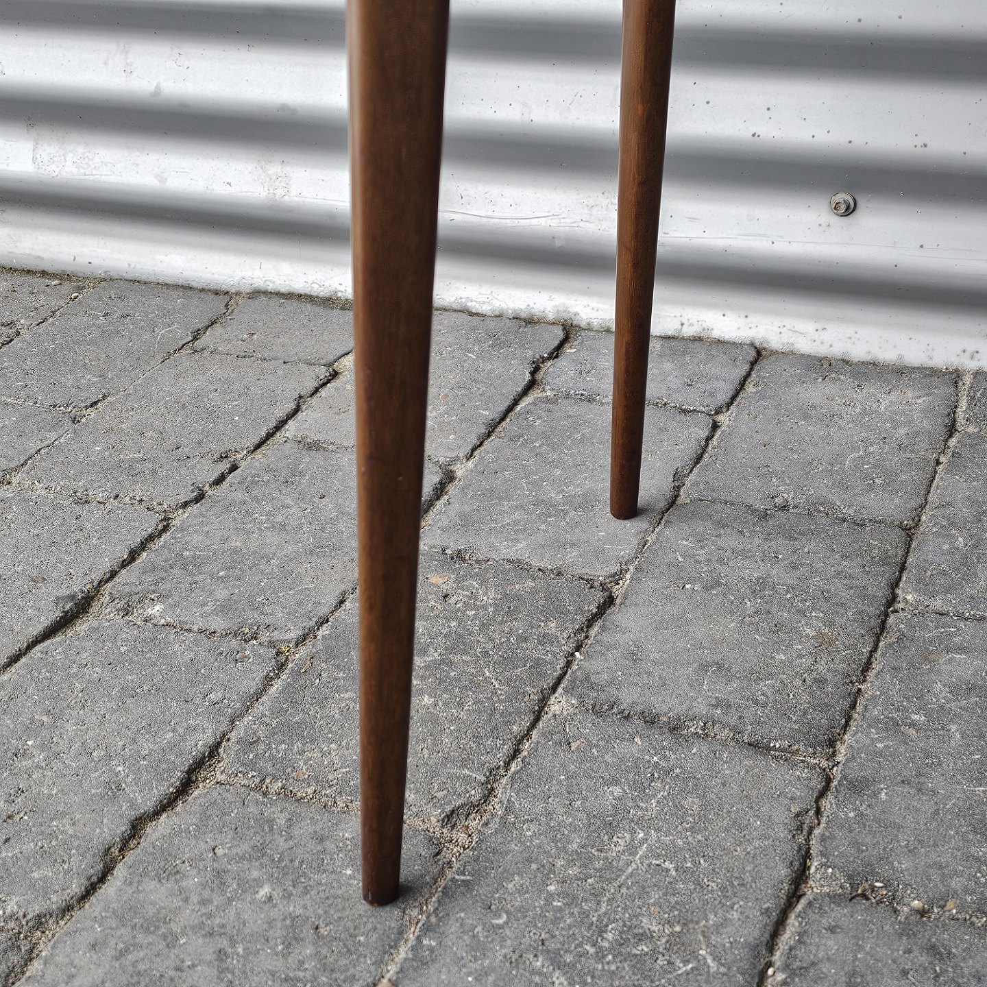 Fremstår med brugsspor i form af mærker i kanten og på undersiden af bordpladen