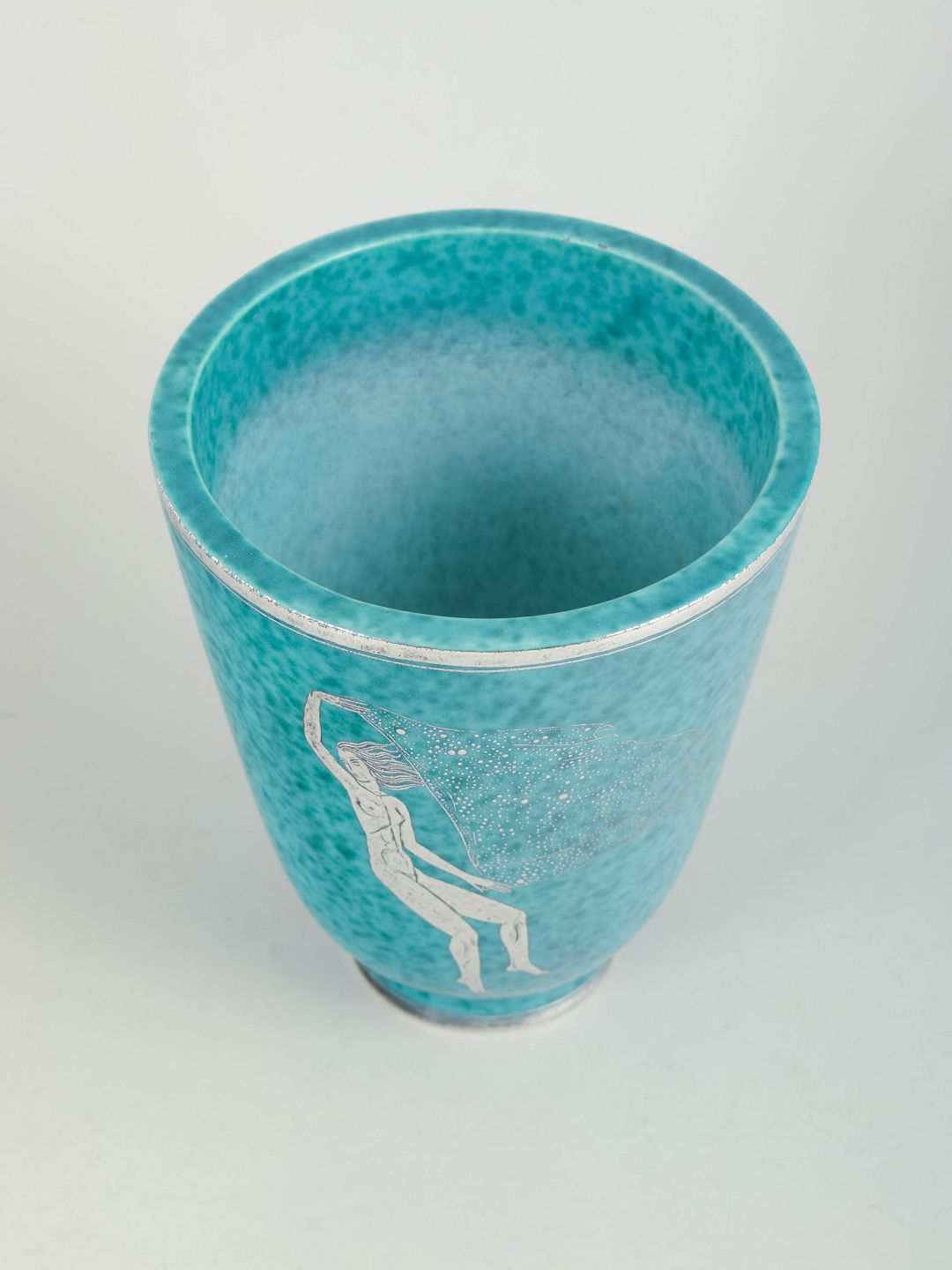 Turkisglaseret stentøjsvase fra Argenta-serien med indlagt sølvdekoration i form af figurmotiv. Model 978.