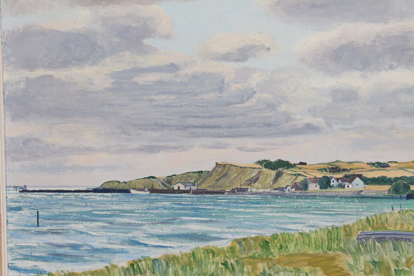 Oliemaleri på lærred, landskab ved vandet